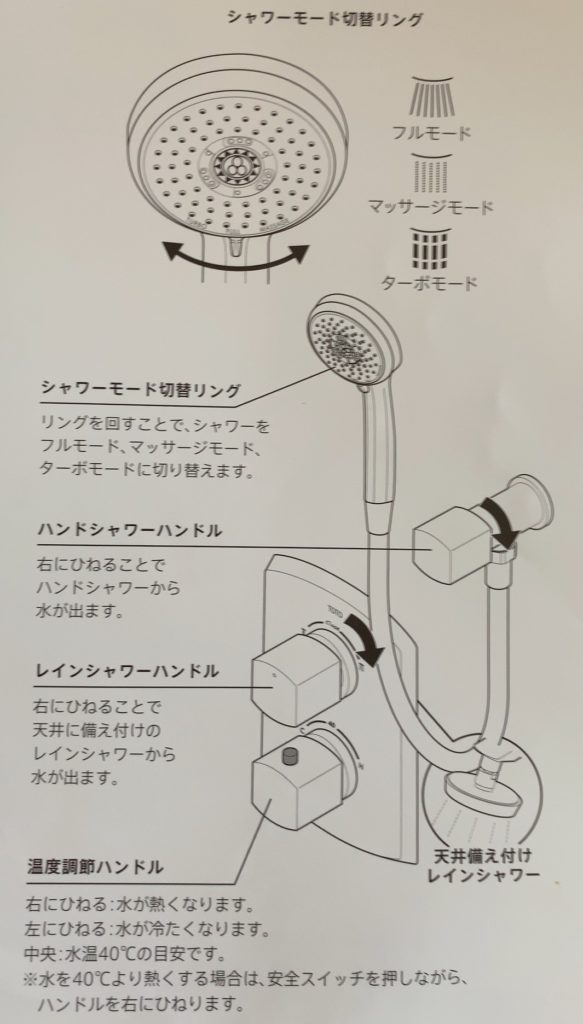 僕のように使い方に戸惑う方が多いのかシャワーの使い方も部屋にありました