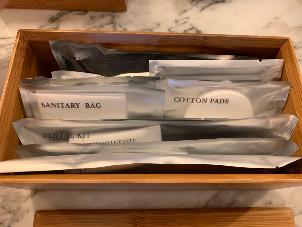 木の箱の中には歯ブラシやカミソリなどが入っています