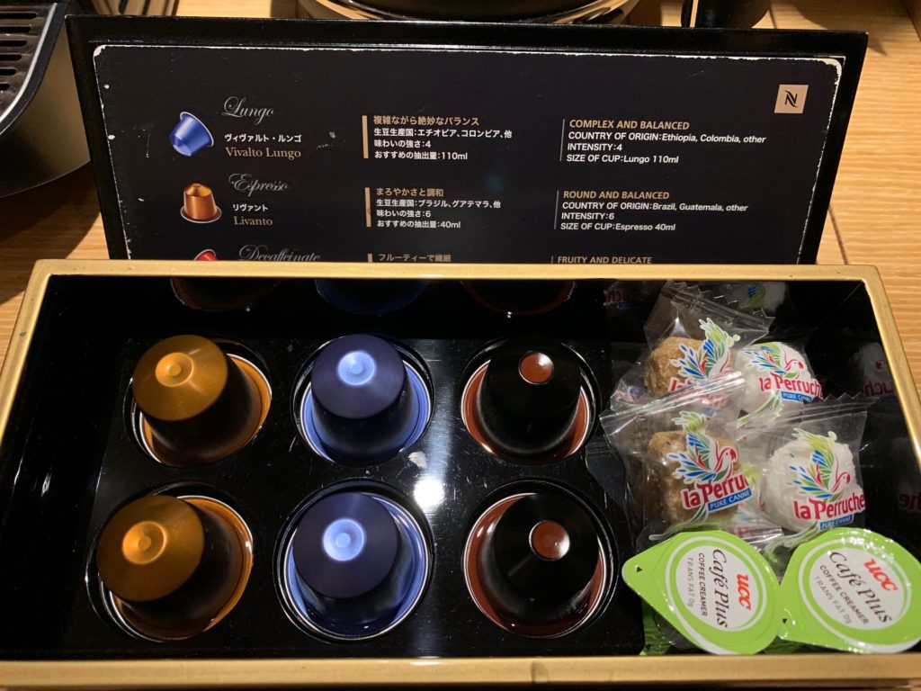 箱を開けるとネスプレッソのカプセルなどが入っています