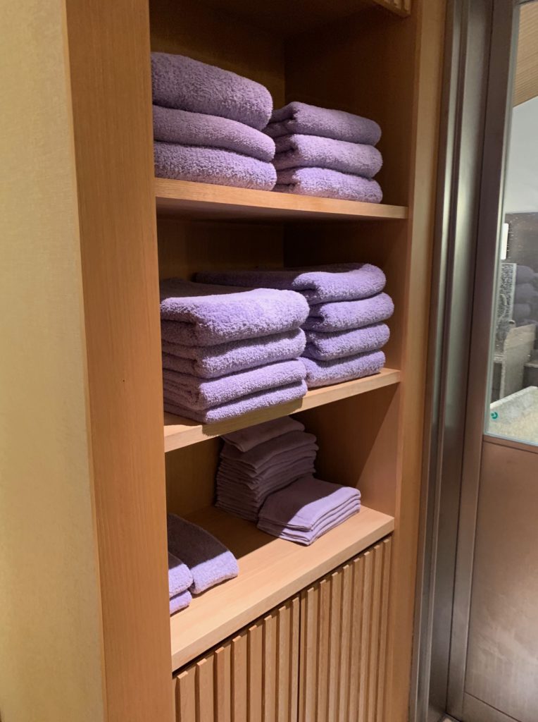 日本式浴場がありタオルも置かれています。部屋からタオルを持参する必要はありません。