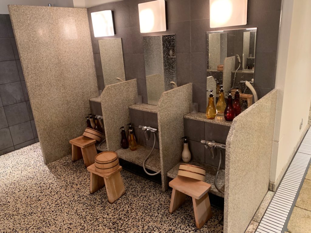 洗い場はこのような感じです。奥にはサウナや水風呂もありました。