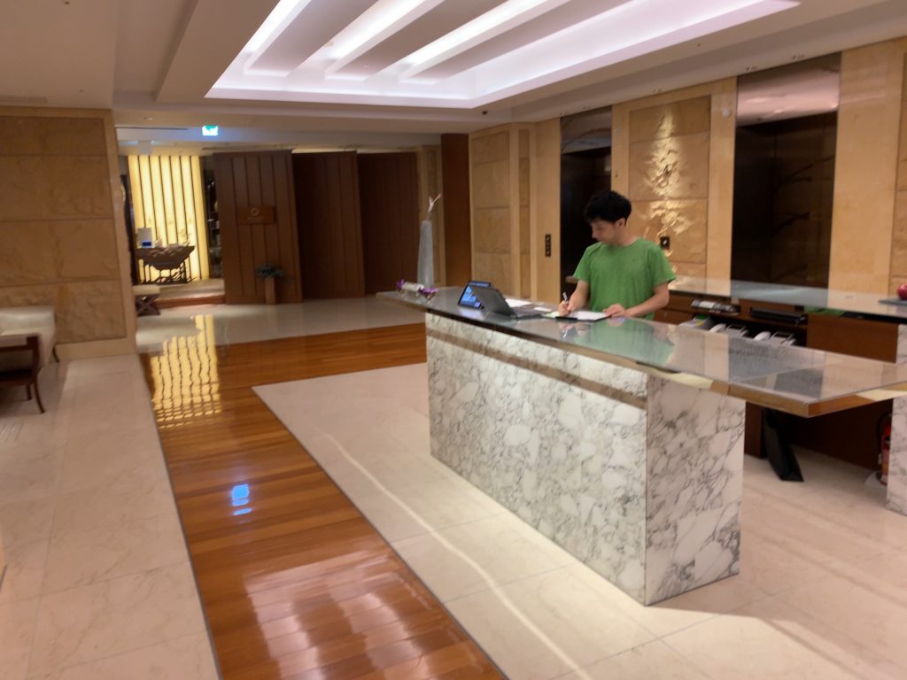 4階エレベーターを降りるとフロントがあり、受付をします。宿泊者は無料で利用できます。