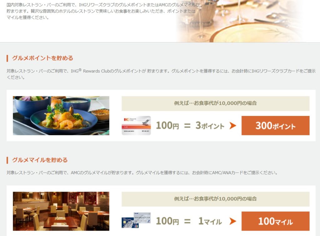 IHG・ANAホテルズグループジャパン公式サイトにも「グルメポイント・マイルのご案内」というページがありました。