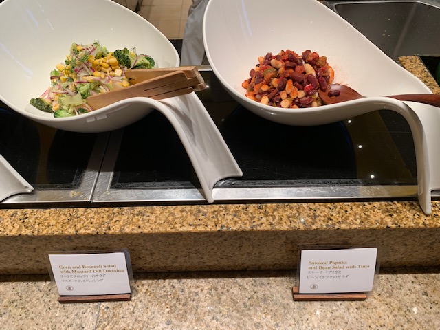 コーンとブロッコリーのサラダ マスタードディルドレッシング、スモークパプリカとビーンズとツナのサラダ
