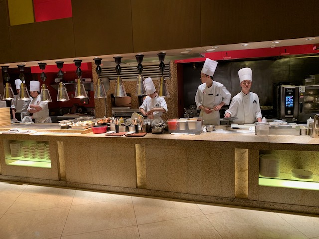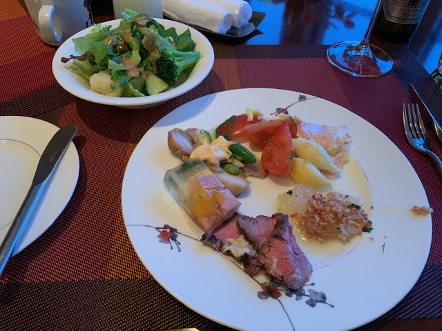 上記メニューのようにディナーの時間は前菜ビュッフェ+選択制のメイン料理+デザートビュッフェとなっています。