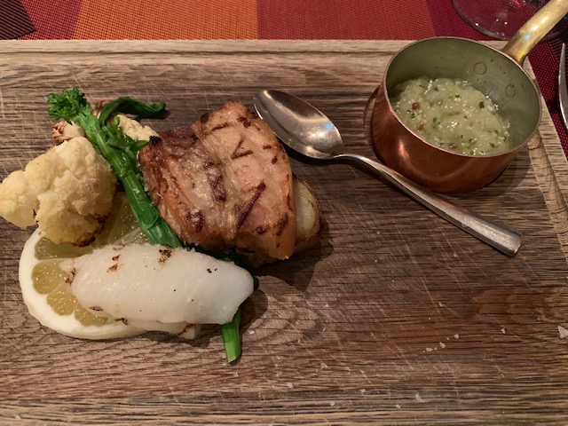豚バラ肉のグリルと烏賊のソテー – レモンコリアンダーチャツネ
