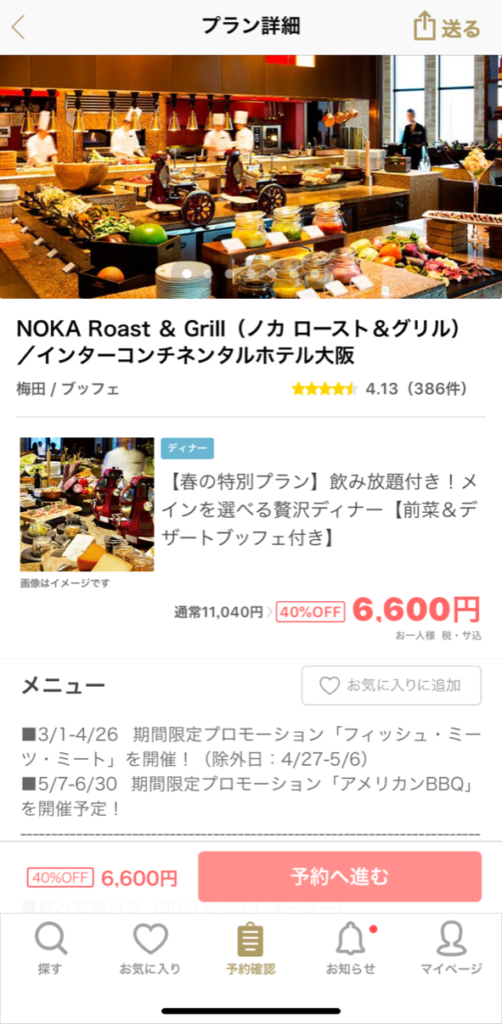 一休レストランでまずはお得なプランが出ていないかチェックするのがいいかもしれません!ちなみに飲み放題付き7700円のプランは常時出ているようです