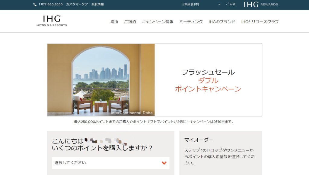 IHGは9月9日まで100%ボーナスのポイントセール中