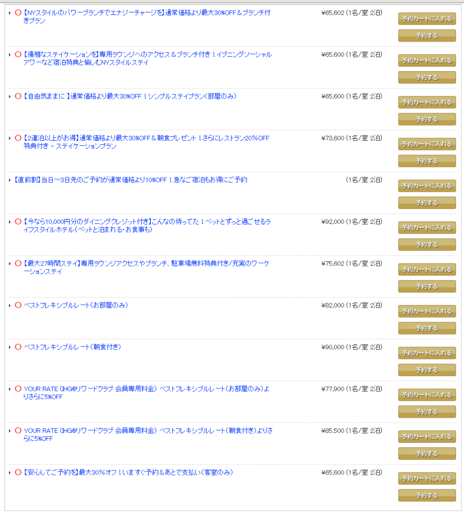 キンプトン新宿東京で適当な日付で平日2連泊で検索してみました!