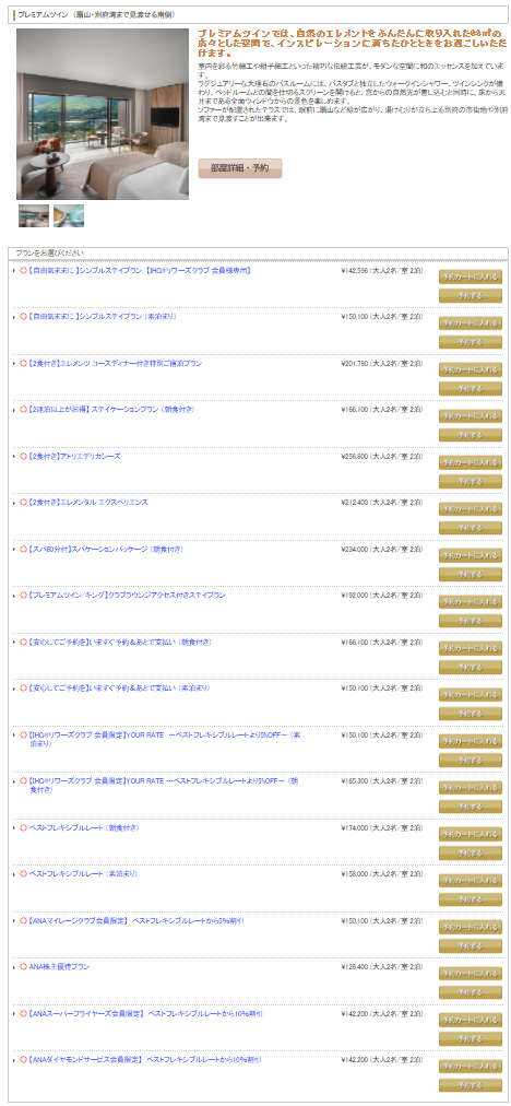 インターコンチネンタル別府で適当な日付で平日2連泊で検索してみました!