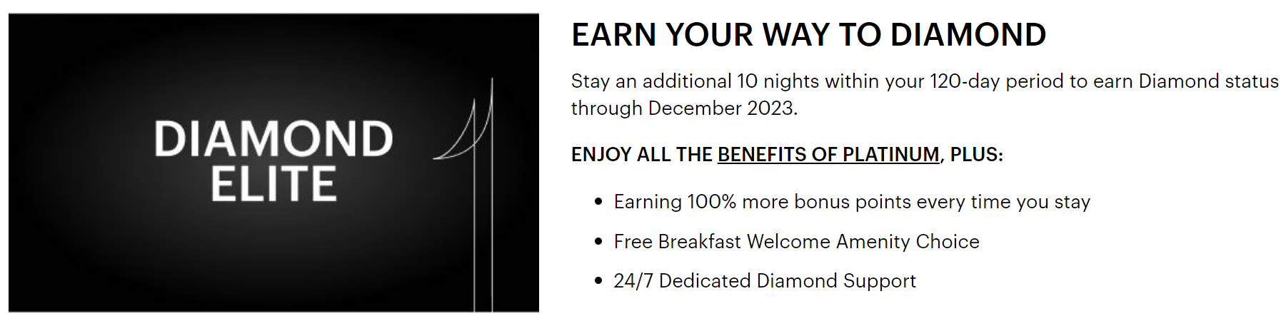 5泊でプラチナエリート会員、15泊でダイヤモンドエリート会員を2023年12月まで維持可能