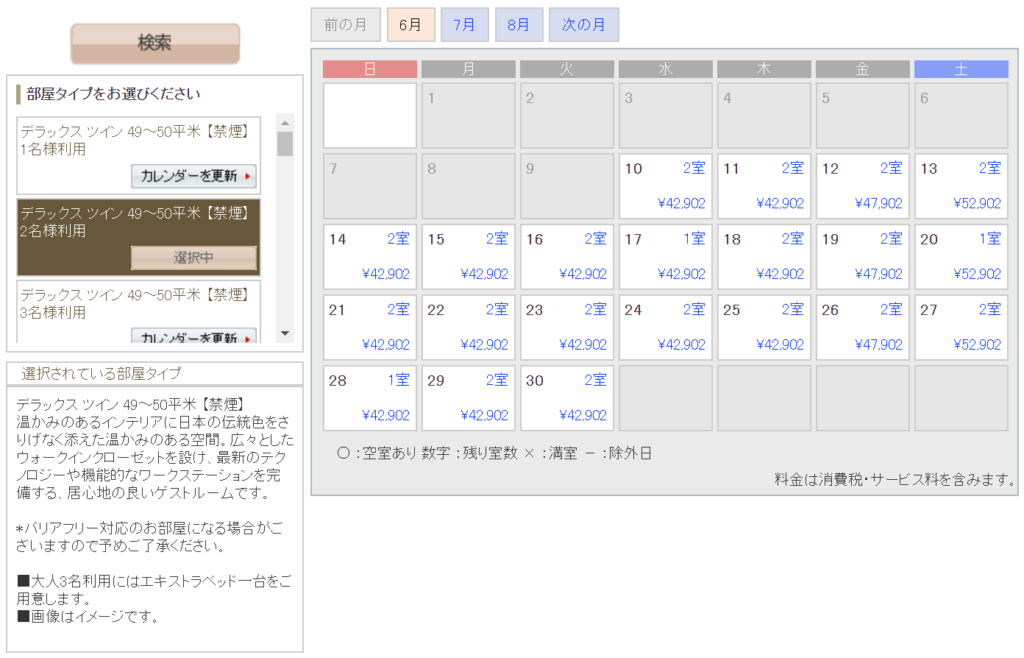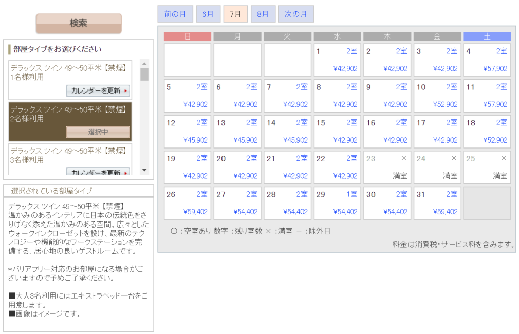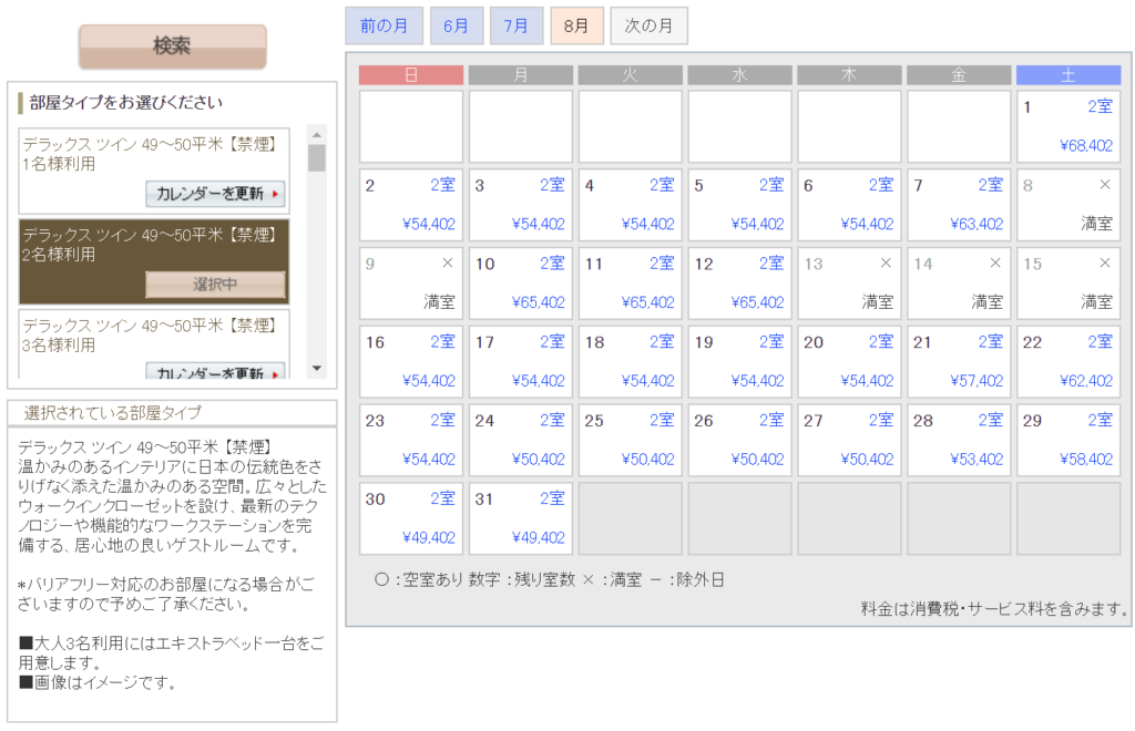 同じ日程で同じ部屋(デラックスツイン)で朝食付きのプラン同士で料金を比較してみました