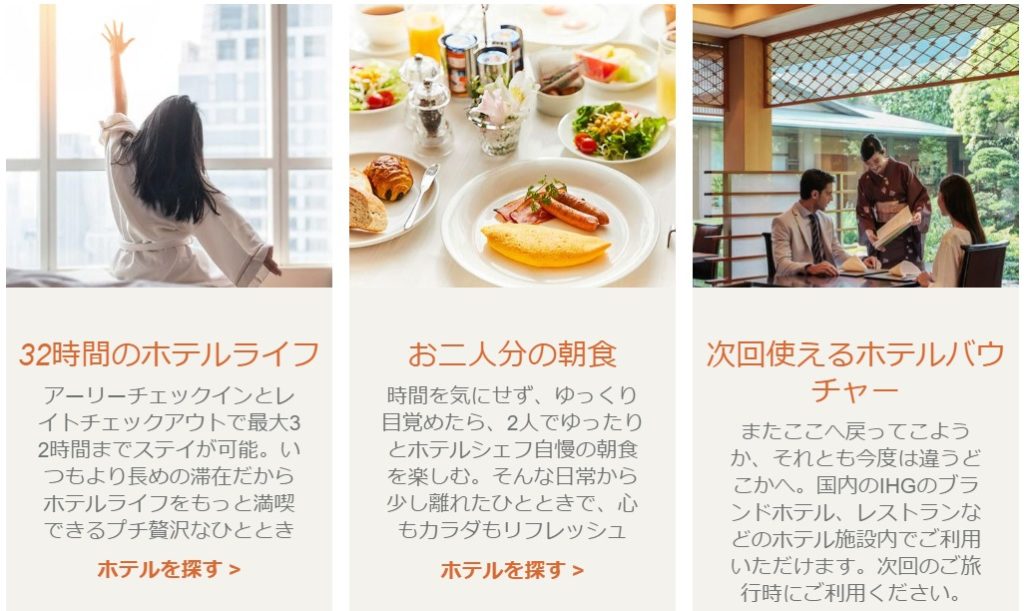 ■ 2020年8月1日~9月30日の間、日本国内のIHG参加ホテルて次回のご滞在時にご利用いただけます。