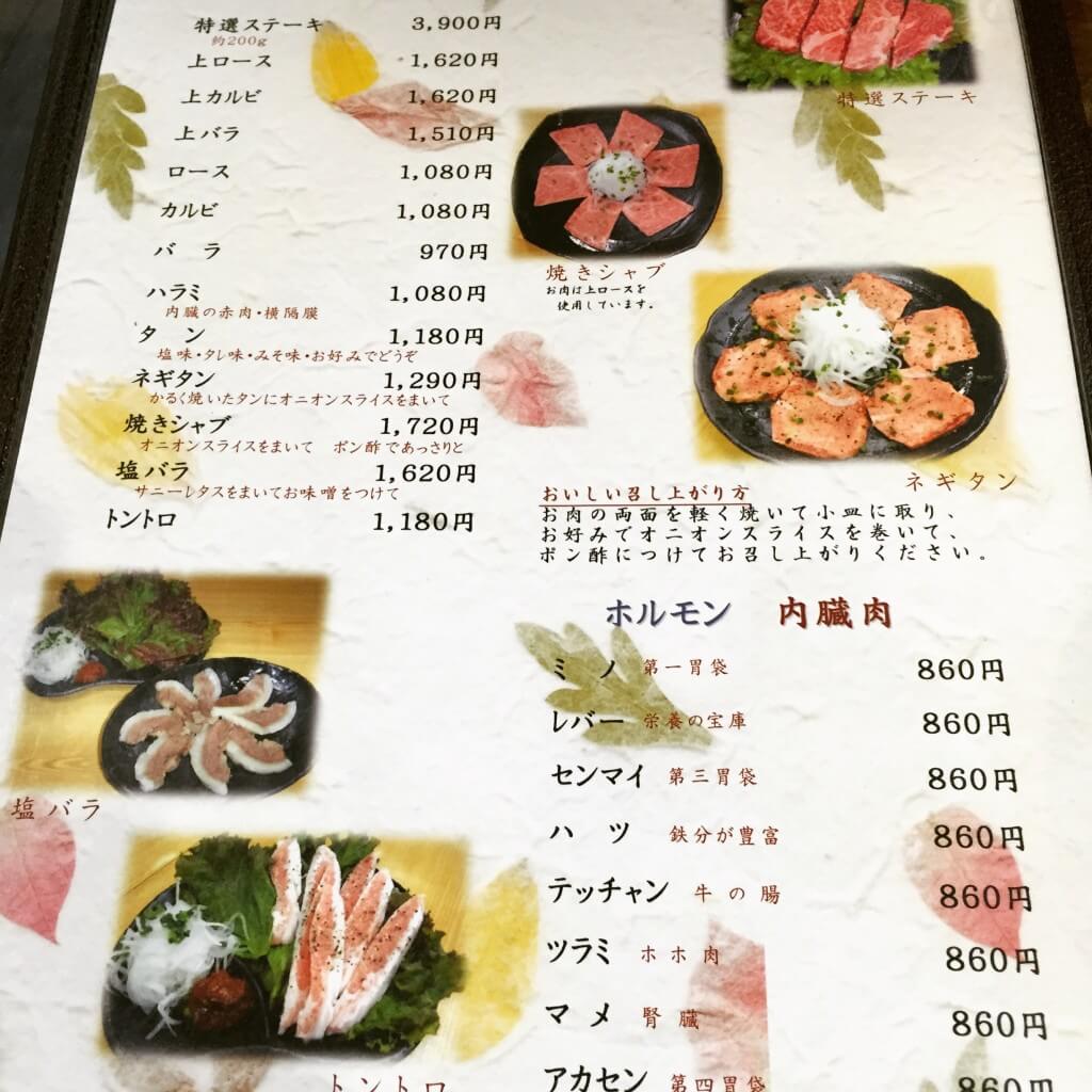 「炭火焼肉やまもと」のメニューと食べたもの