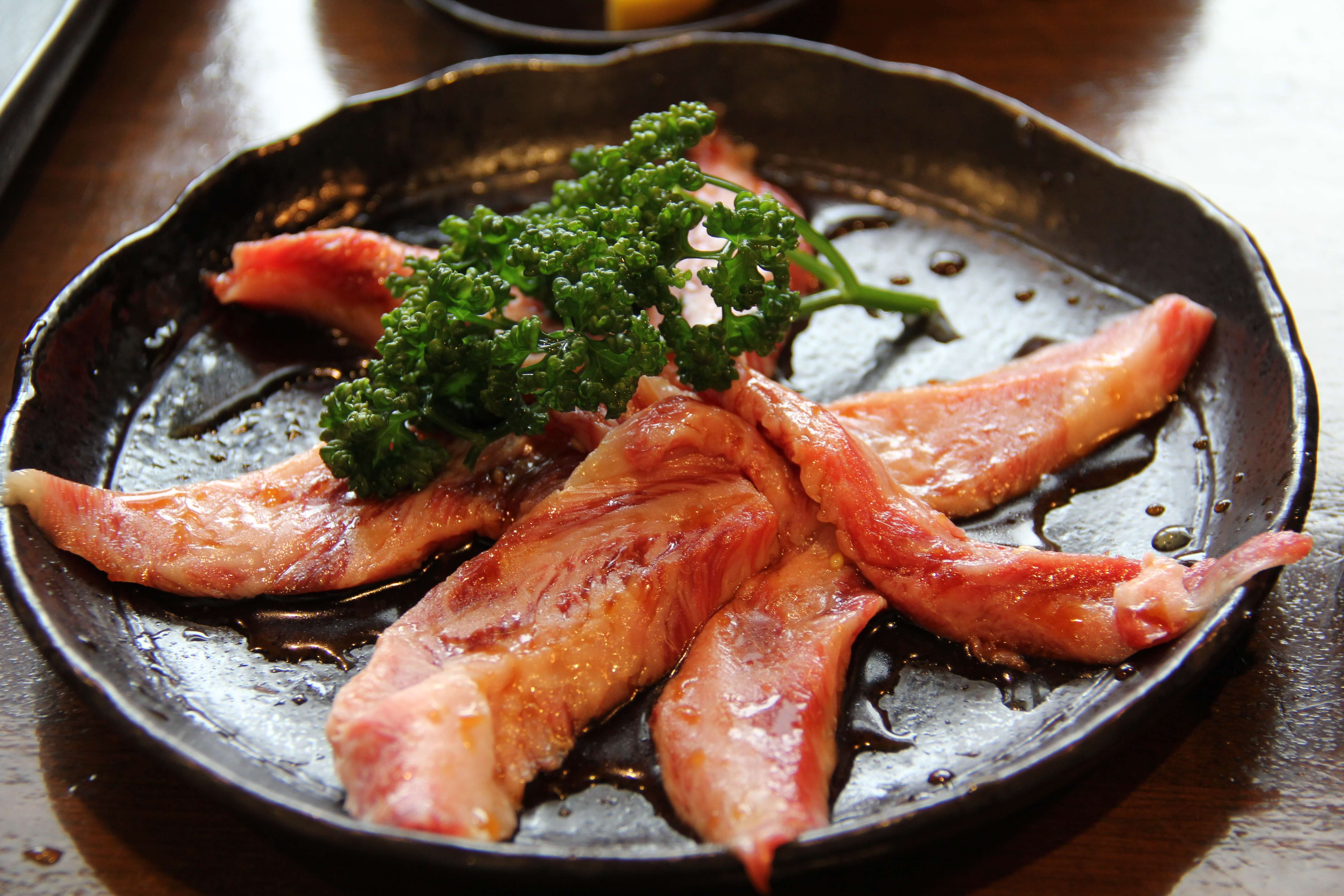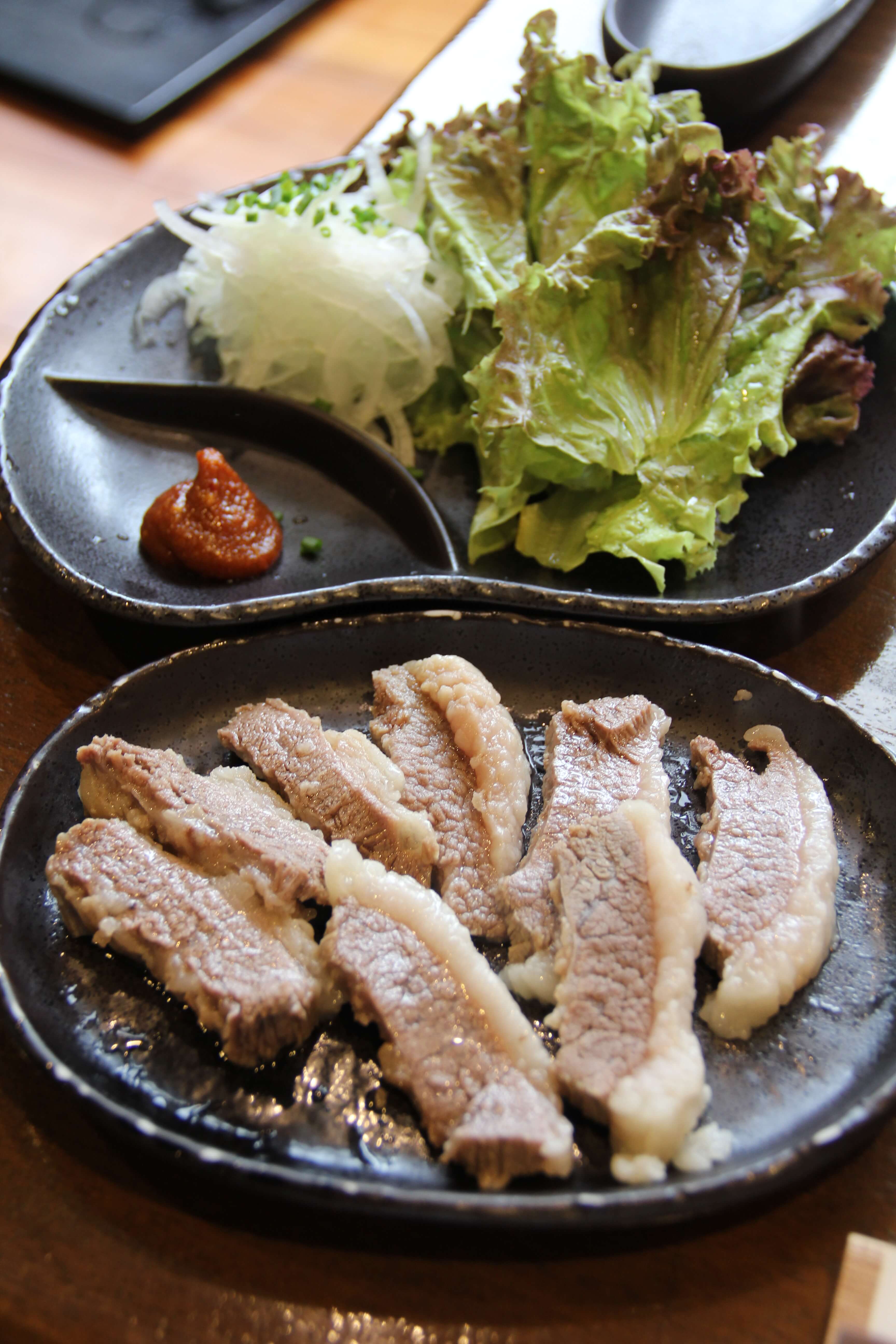 上の写真のようにバラ肉を塩で煮込んだもので完成された状態で提供されます。焼く必要はありません。サンチュを巻いてやまもと名物「やま味噌」を付けて頂きます。とても柔らかくあっさりとしていて、他の焼肉屋さんではなかなか食べられないメニューだと思います。