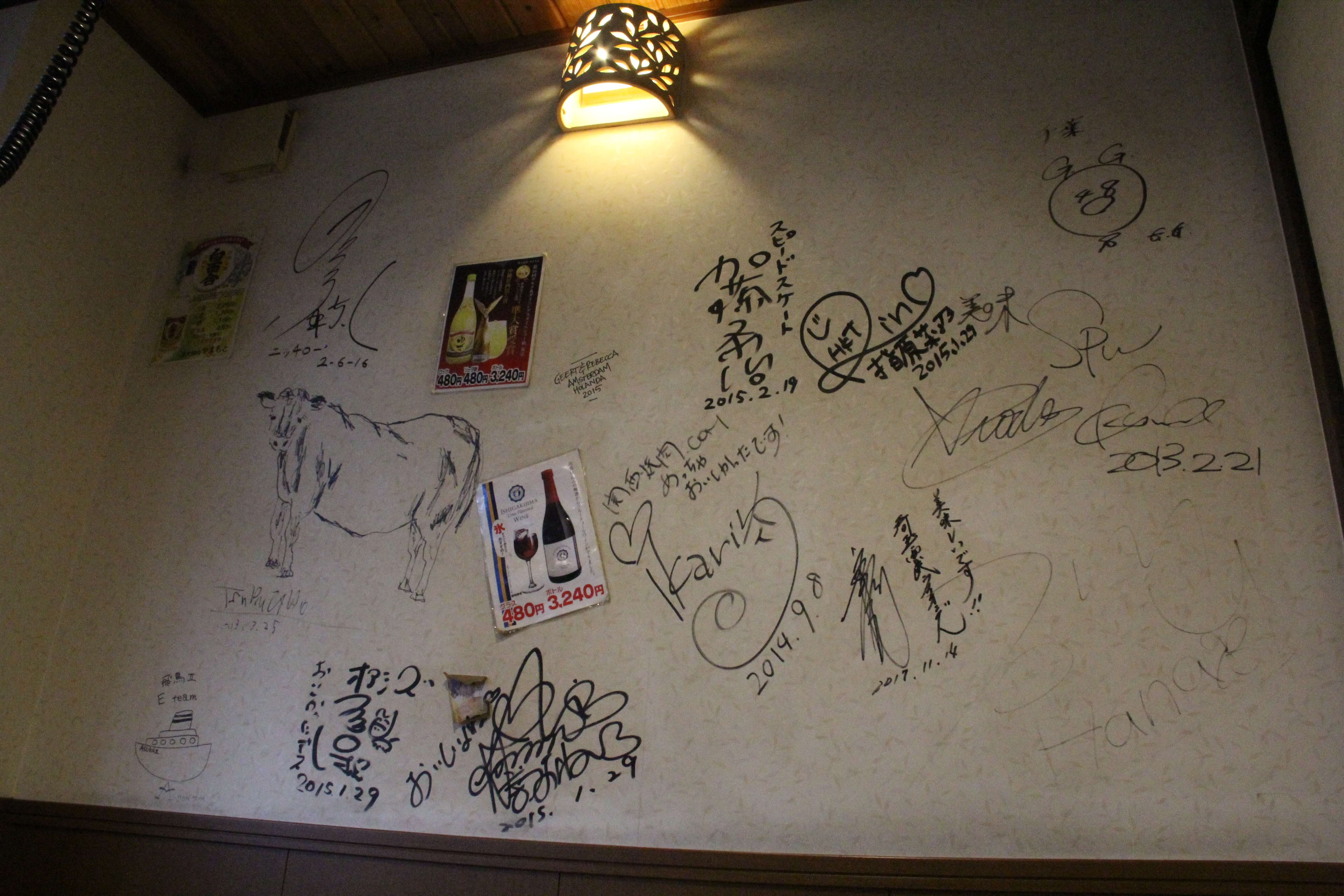現在のお店は壁一面に有名人のサインがあり人気の程が伺えます。