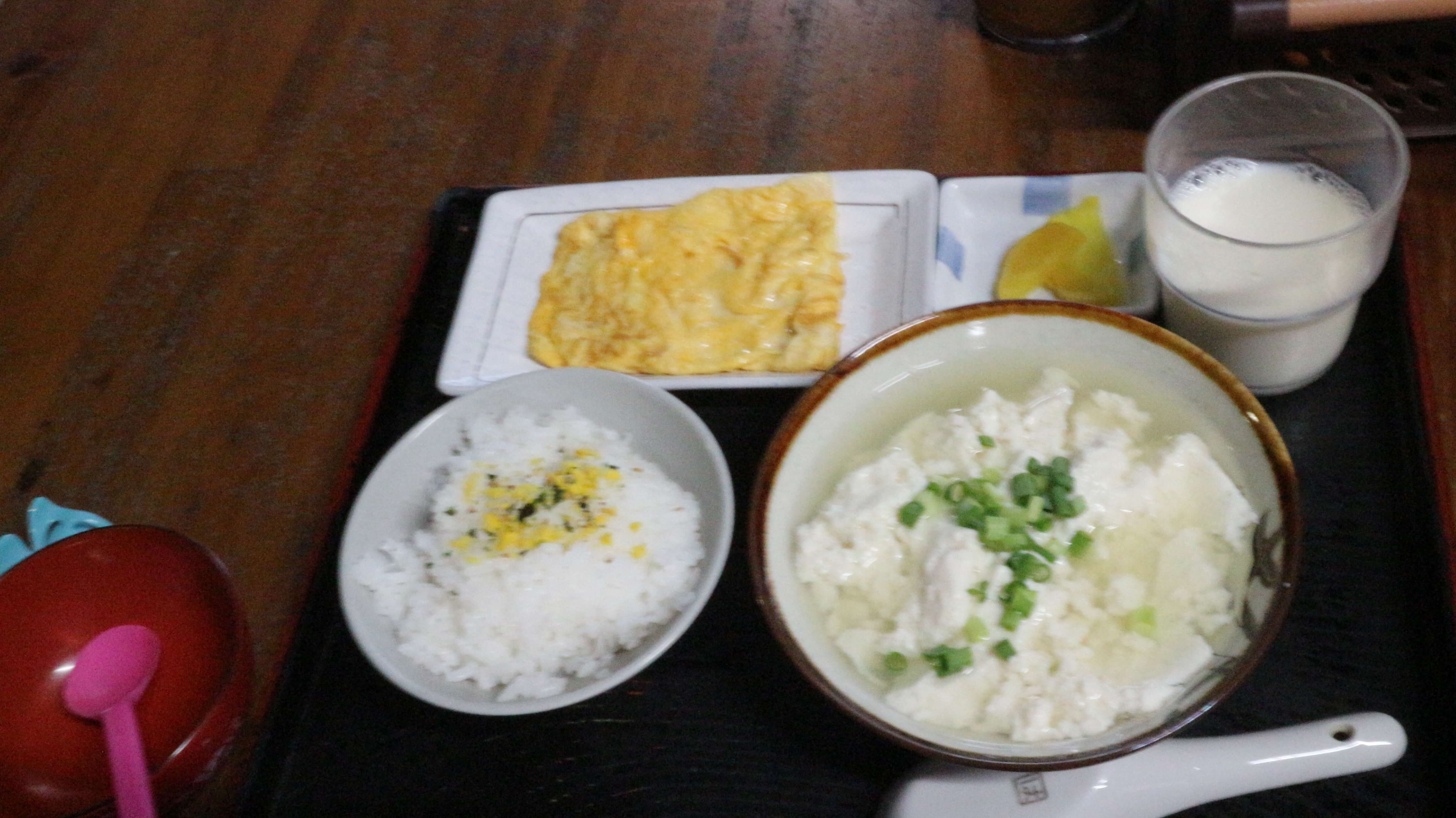 お年寄りゆし豆腐セットはゆし豆腐におから、おかゆ、卵焼きがセットになったものです。もちろんお年寄りでなくても注文できるのですが、僕が9時に注文した時は売り切れで食べられませんでした…こちらを食べたいときは早めに行った方がよさそうです。