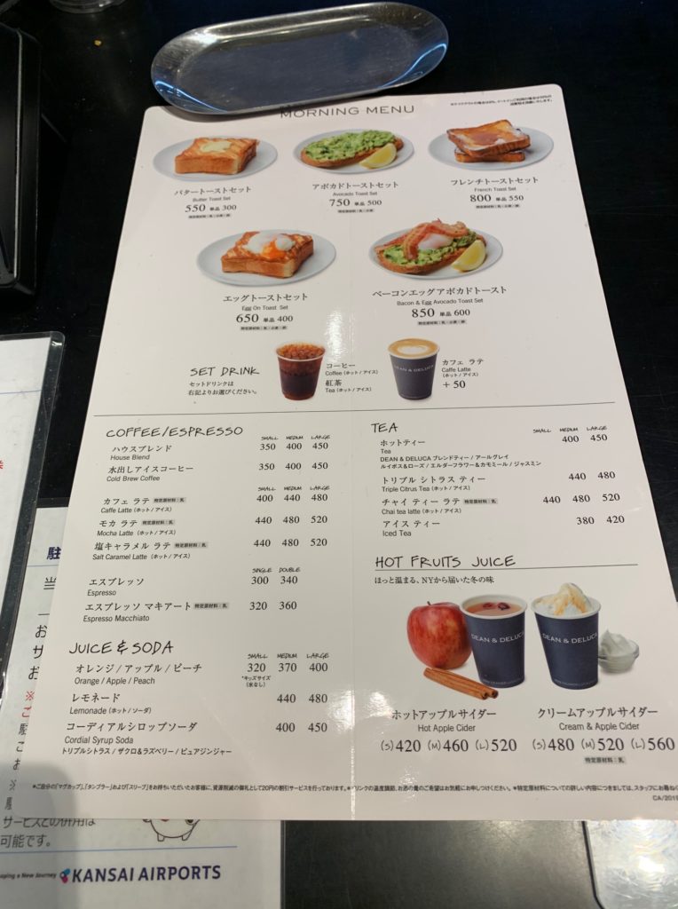 その名の通り食のセレクトショップとして有名な「DEAN & DELUCA」が展開するカフェです。以下にご紹介するようにモーニングセットもいろいろありお店の前のオープンスペースのテーブルでゆっくり食べるのもいいです。パンやサンドウィッチもありますので時間がない時はテイクアウトでも使えます。アンデルセンが無くなった今となってはパッとパンを買えるので個人的には時間がない時の選択肢として重宝しております。ちなみにカウンター席は充電も可能ですのでラウンジが利用できない方で充電したいという時にもおすすめです。