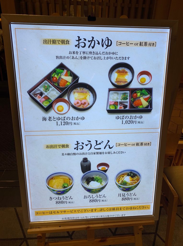 「うどんすき」で有名な大阪のうどん屋さんです。こちらのお店の出汁は美味しく、伊丹空港で最も大阪らしい朝食と言えるでしょう。