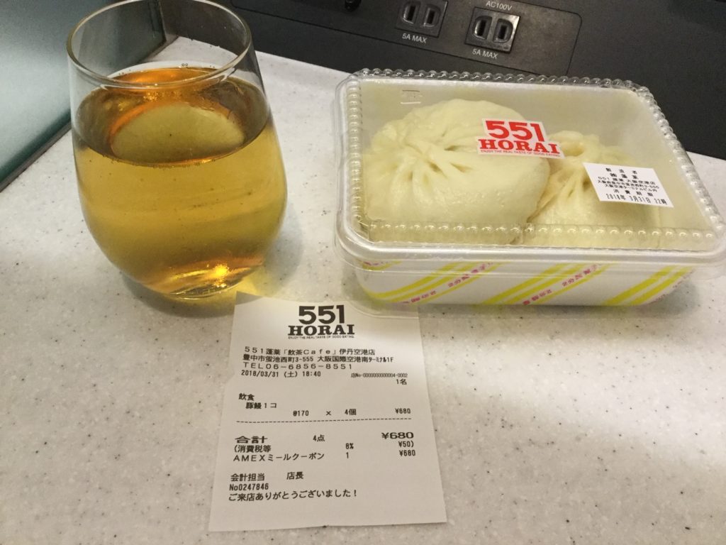 言わずと知れた「豚まん」で有名なお店です。伊丹空港には到着口に販売店はあるのですが、改修前に可能だったイートインができなくなったのです…改修前にANAに乗る時は551蓬莱のイートインで豚まんを食べてビールを飲んでから保安検査場に向かうのが常だった私にとっては551HORAIをイートインできる店舗が伊丹空港に復活するのは嬉しい限りです!