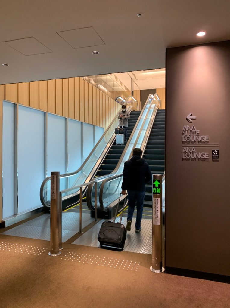 しかも、今まではANAラウンジが3階、ANAスイートラウンジが2階となっていましたが、ANAラウンジもANAスイートラウンジも4階になりましたので下の写真のようにエスカレーターを上がります。