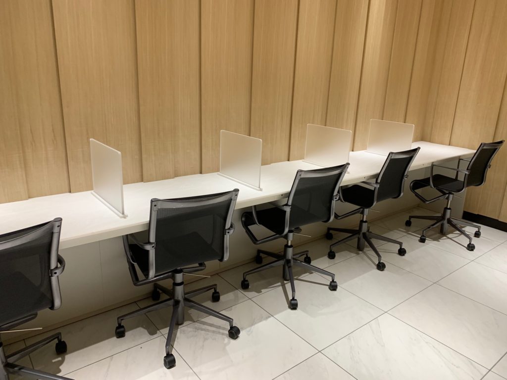 まず伊丹空港のANAラウンジはビジネス客が多く滞在時間が短い利用者が比較的多いことから出入口近くに気軽に座って、すぐに出て行けるような席が用意されています。見取り図「②」の場所の写真です。
