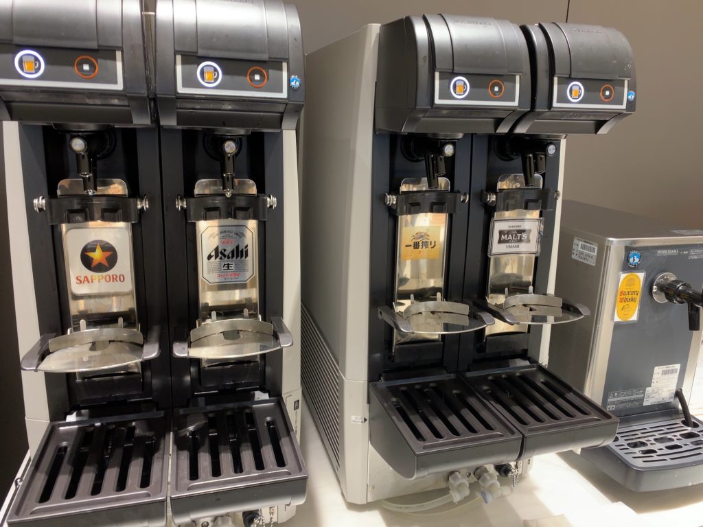 リニューアル後はサッポロ(黒ラベル)、アサヒ(スーパードライ)、キリン(一番搾り)、サントリー(モルツ)の4種類を飲むことができます。羽田空港ANAラウンジでも3種類ですのでこれは嬉しいです!