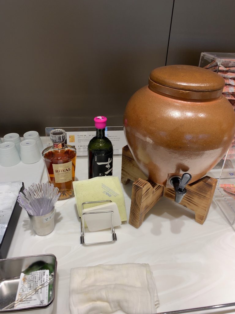 伊丹空港ANAラウンジは他の空港の国内線ラウンジと同様フードの提供はあられ程度となっていますが、アルコールを含むドリンクが提供されています。