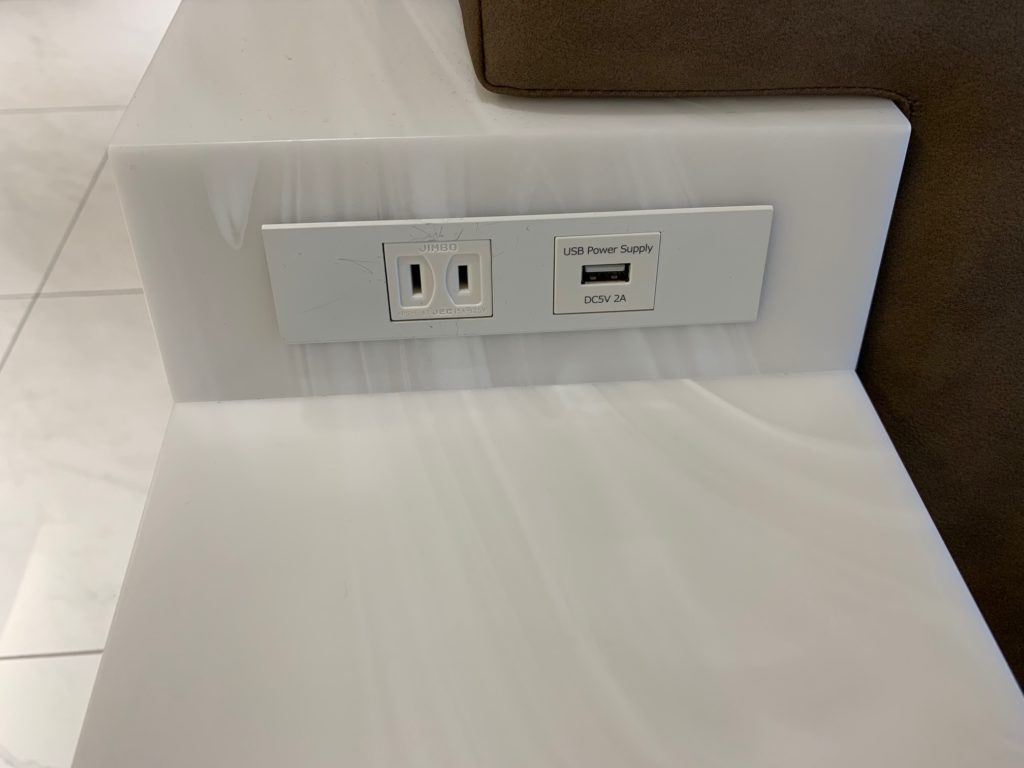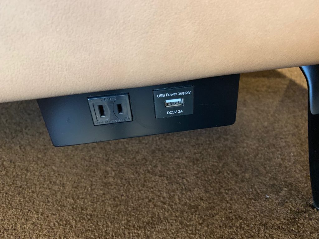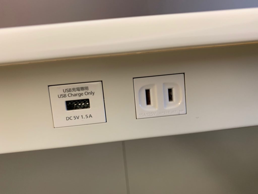 伊丹空港ANAラウンジの電源は2種類あります。電源は座席の種類によって異なります。