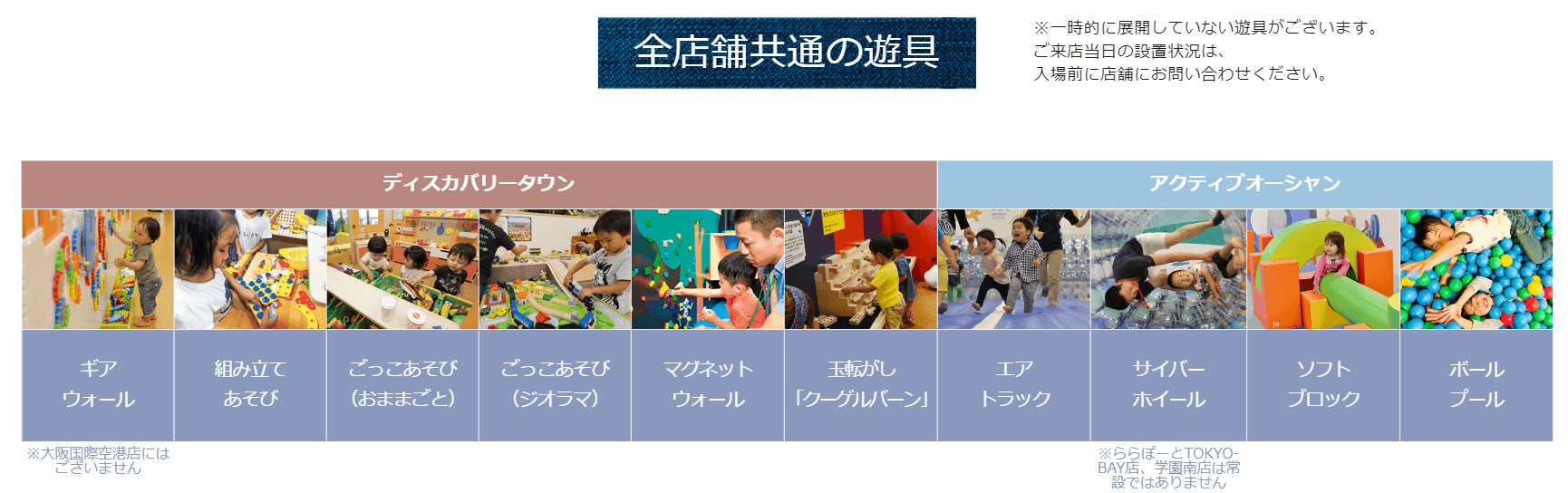 あとは他の店舗にあるギアウォールという歯車を組み立てて遊ぶ遊具がありませんのでご注意ください。