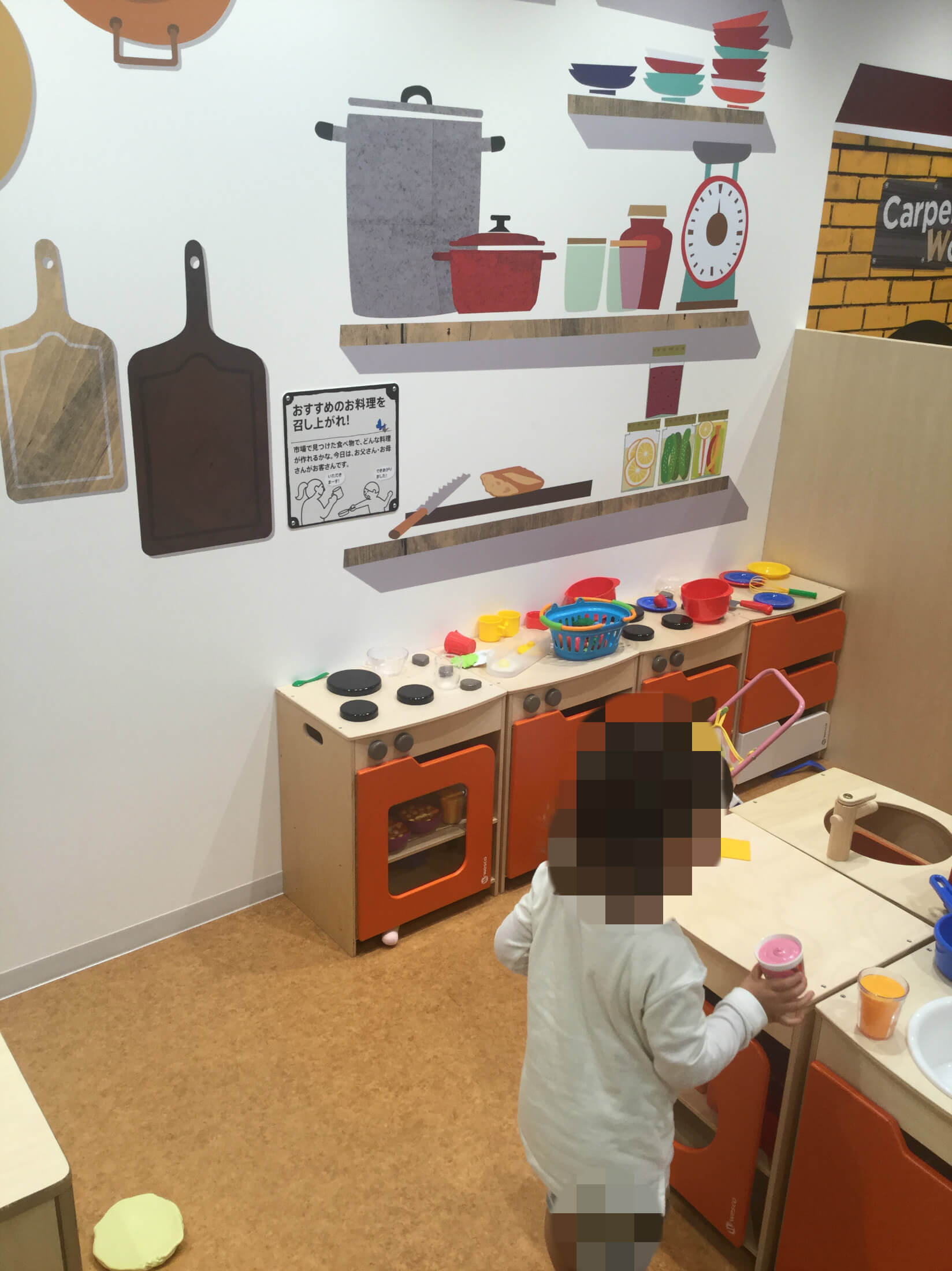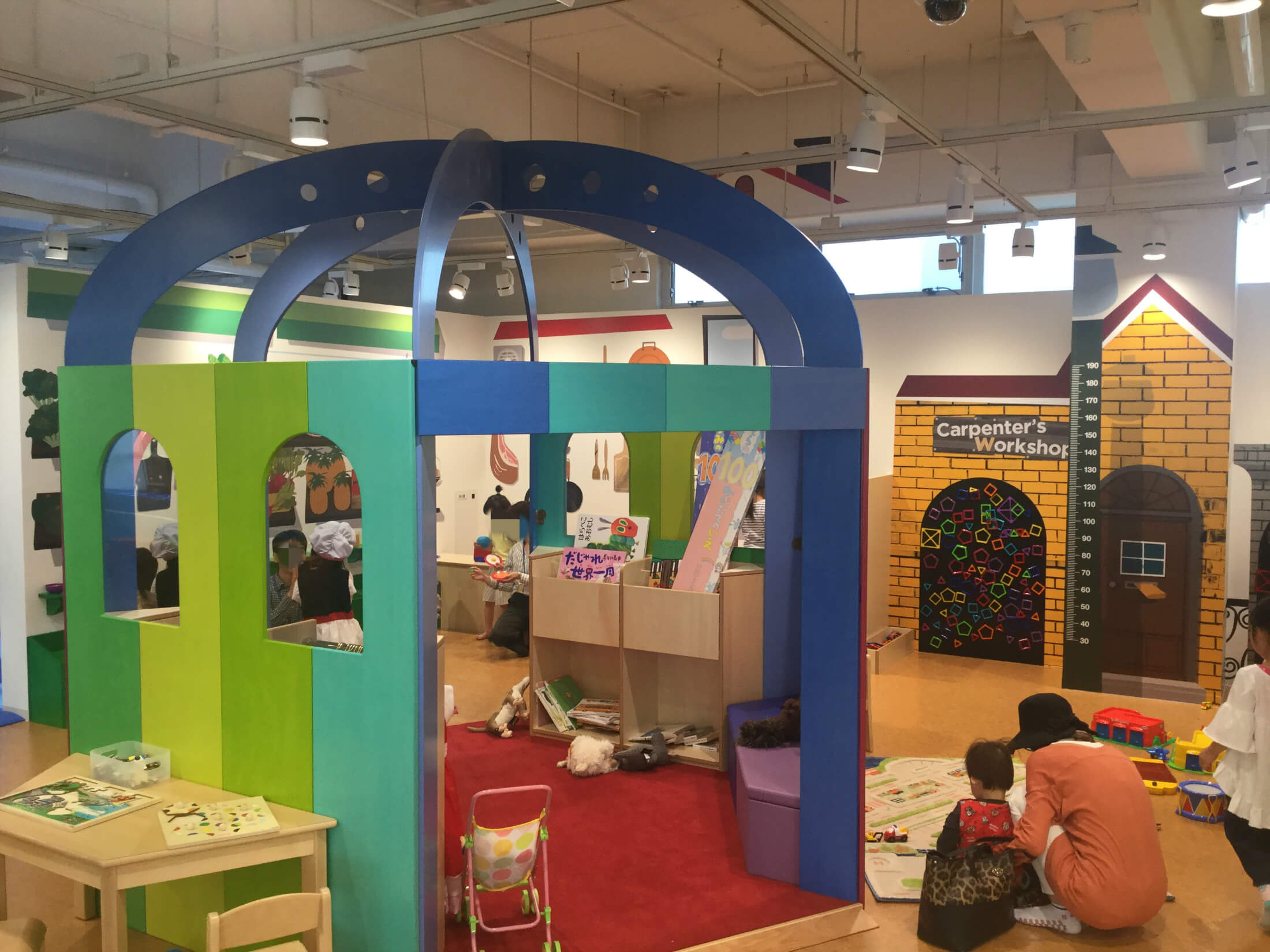 ごっこ遊びが楽しめるマーケットや、組み立てあそびのワークショップなど、発見にあふれたゾーン