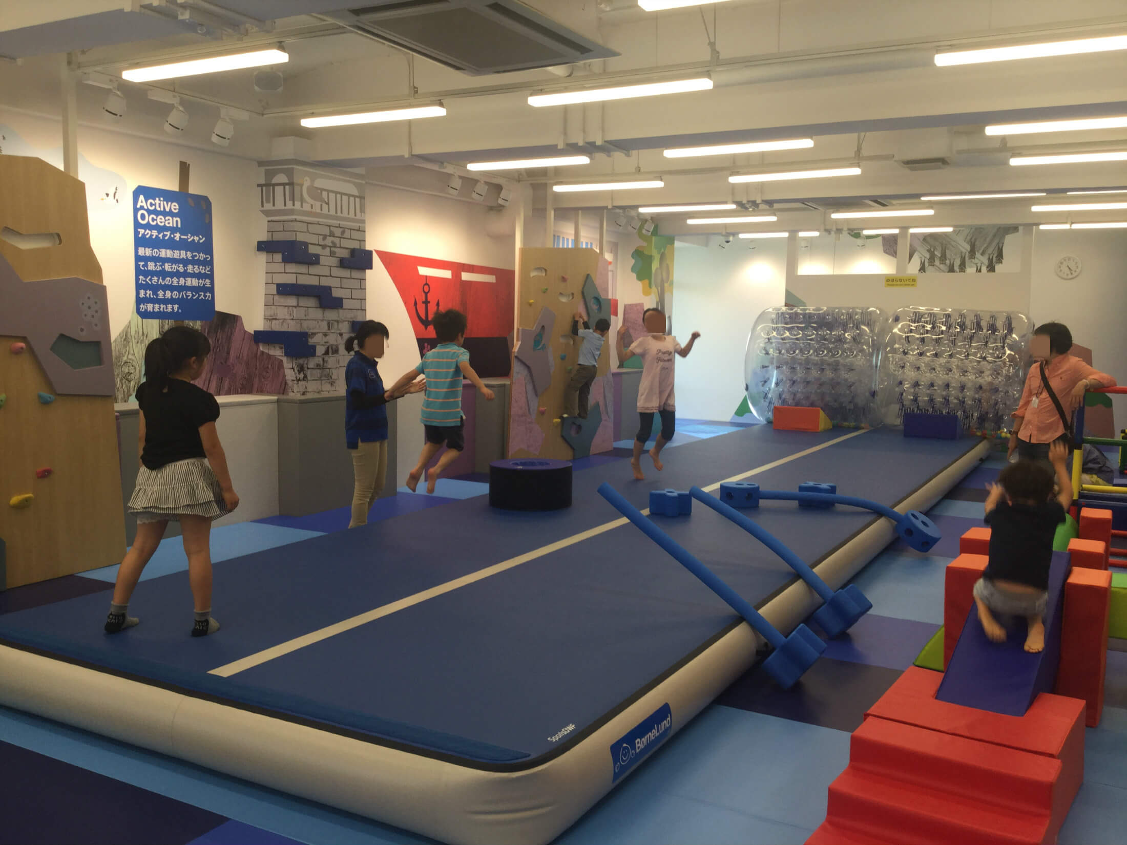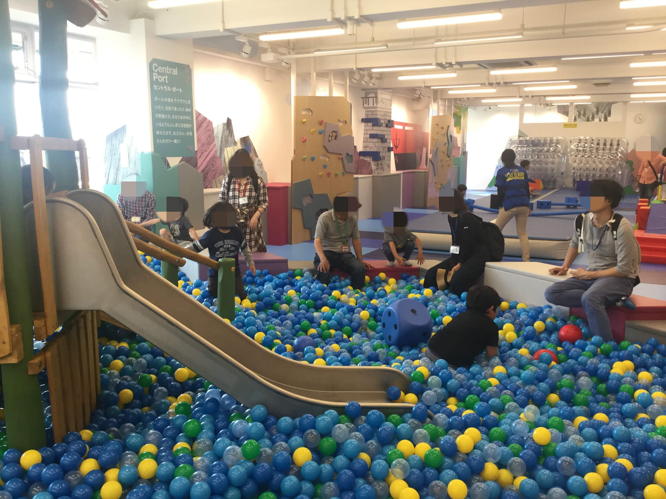 数万個ものボールの海では、飛び込んだり、ざぶざぶ歩いたり泳いだり、もぐってみたりいろいろな遊びができます。