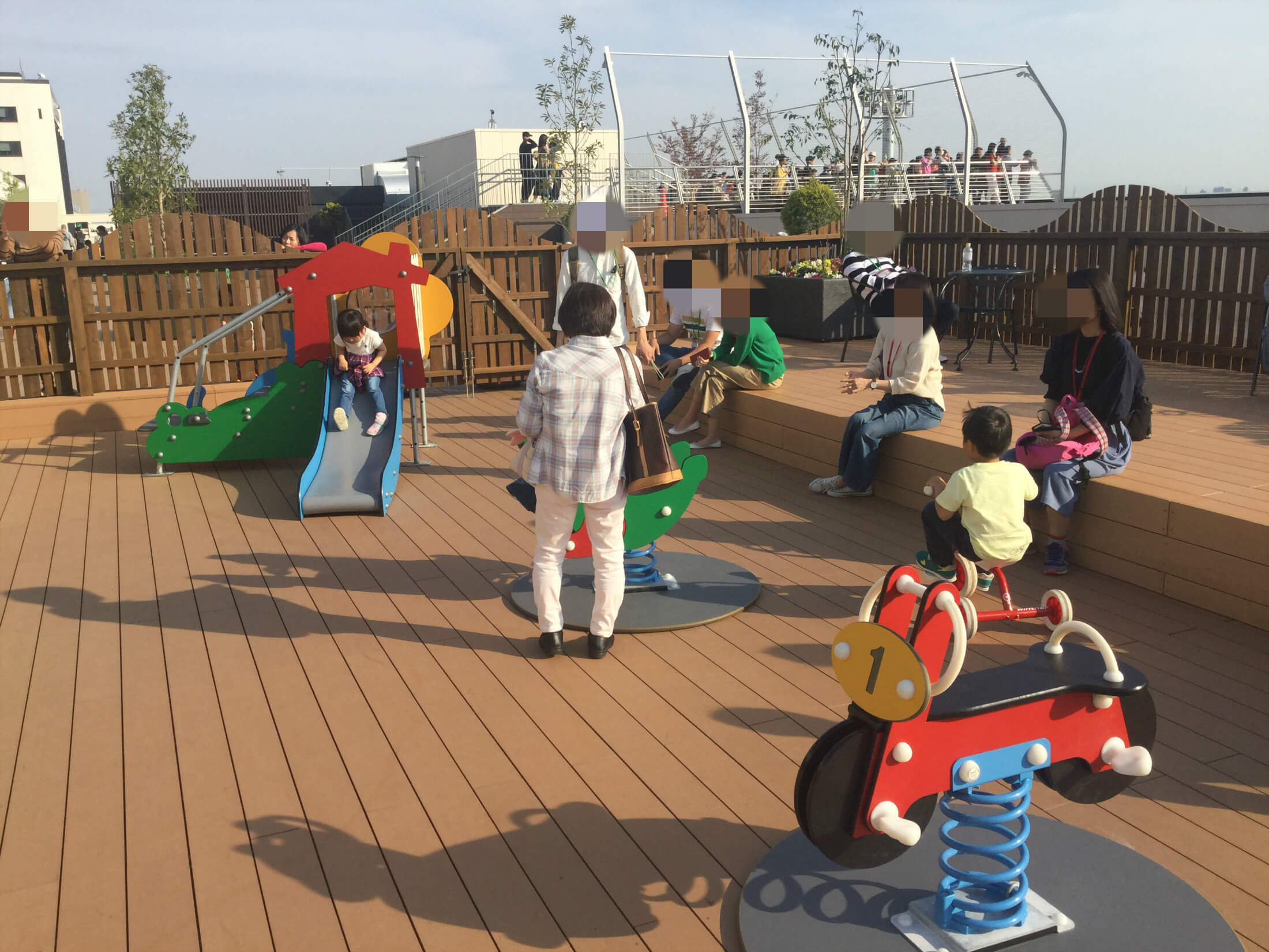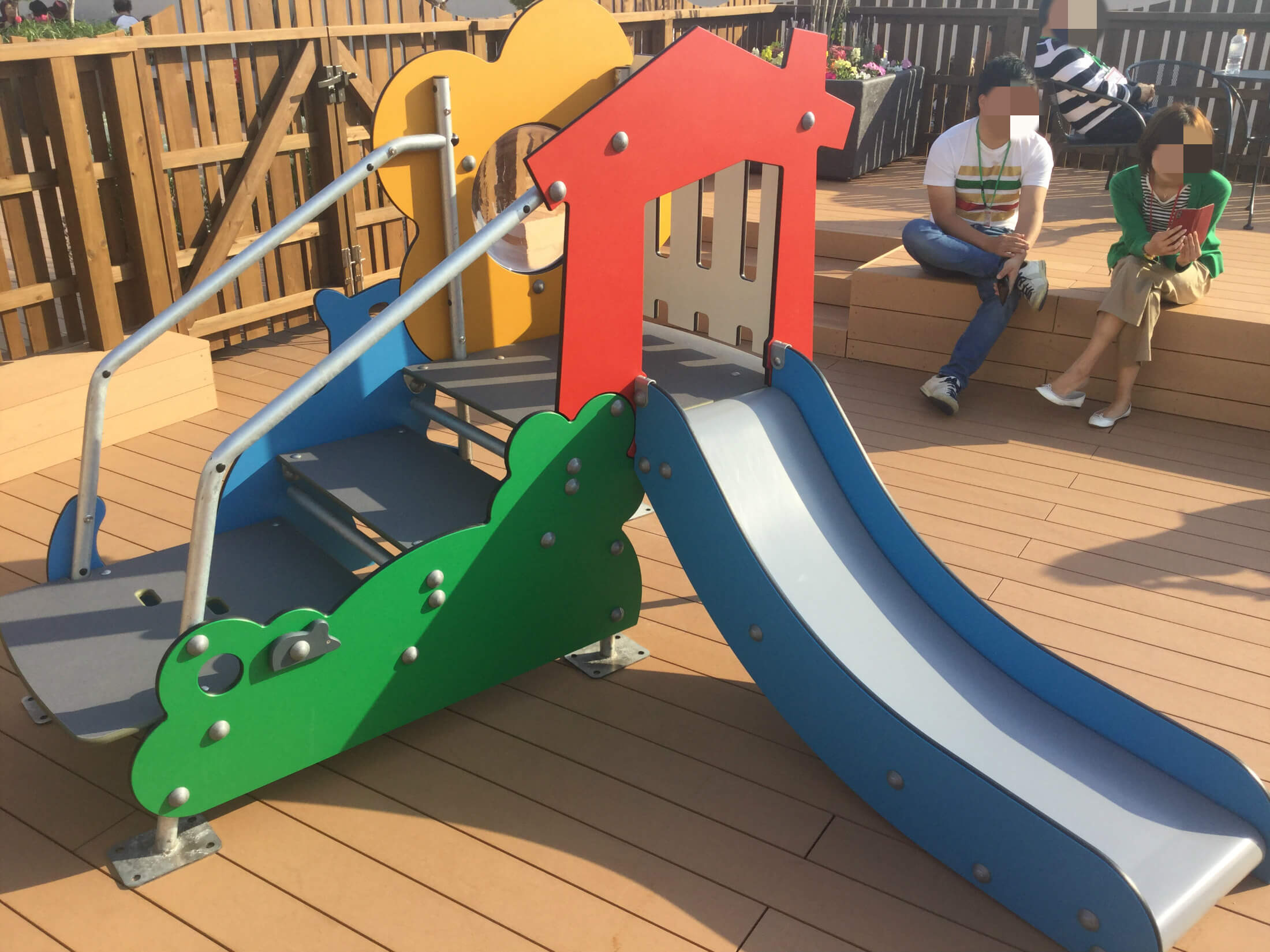 小さな子供用の遊具とテラスなどがあります。天気のいい日は気持ちよく遊べそうです。