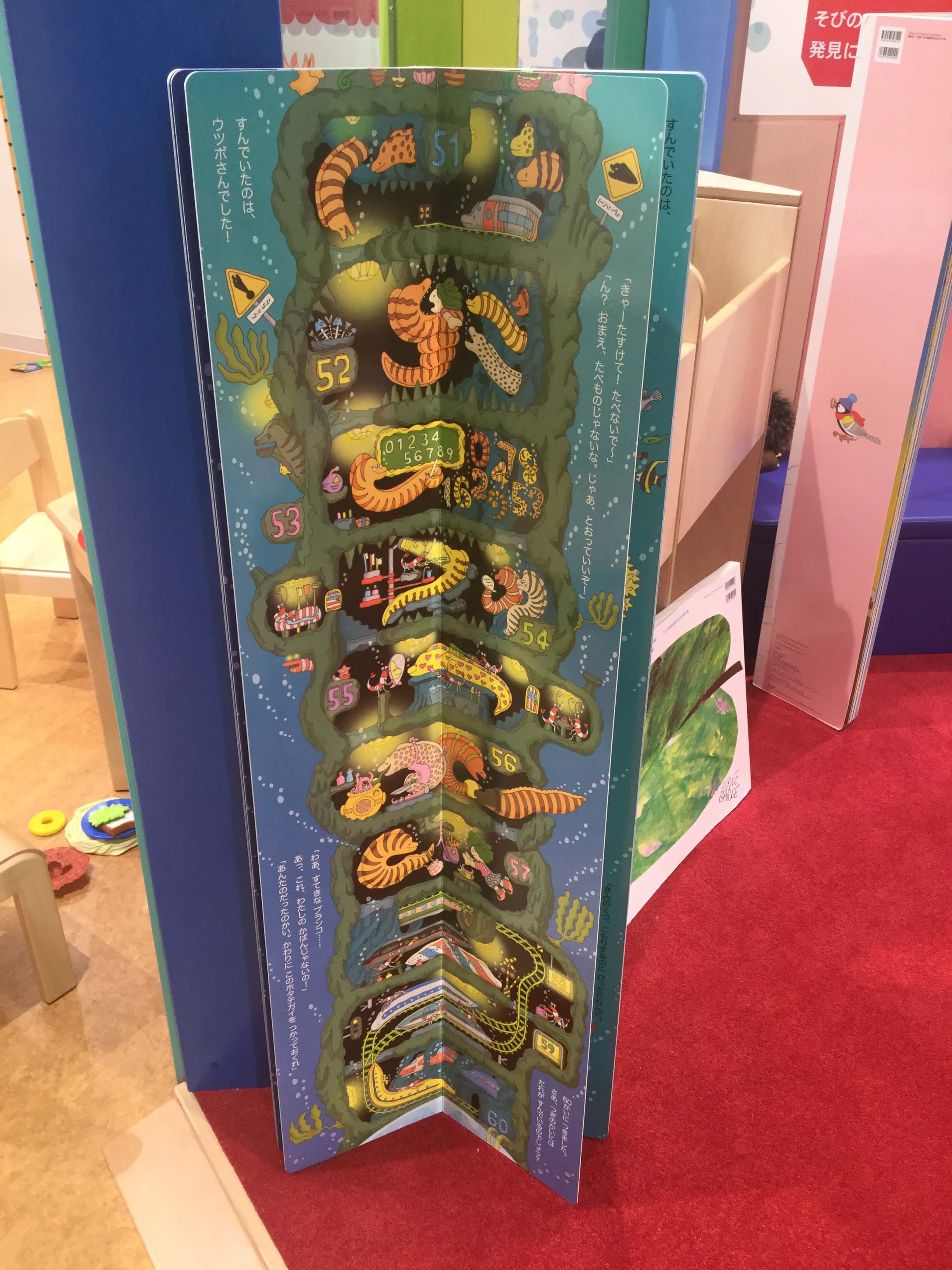 こんな大型絵本があり楽しめます。ちょっと大きさが分かりにくい写真ですみません…こちらは人気の「100かいだてのいえ」シリーズの大型絵本です。