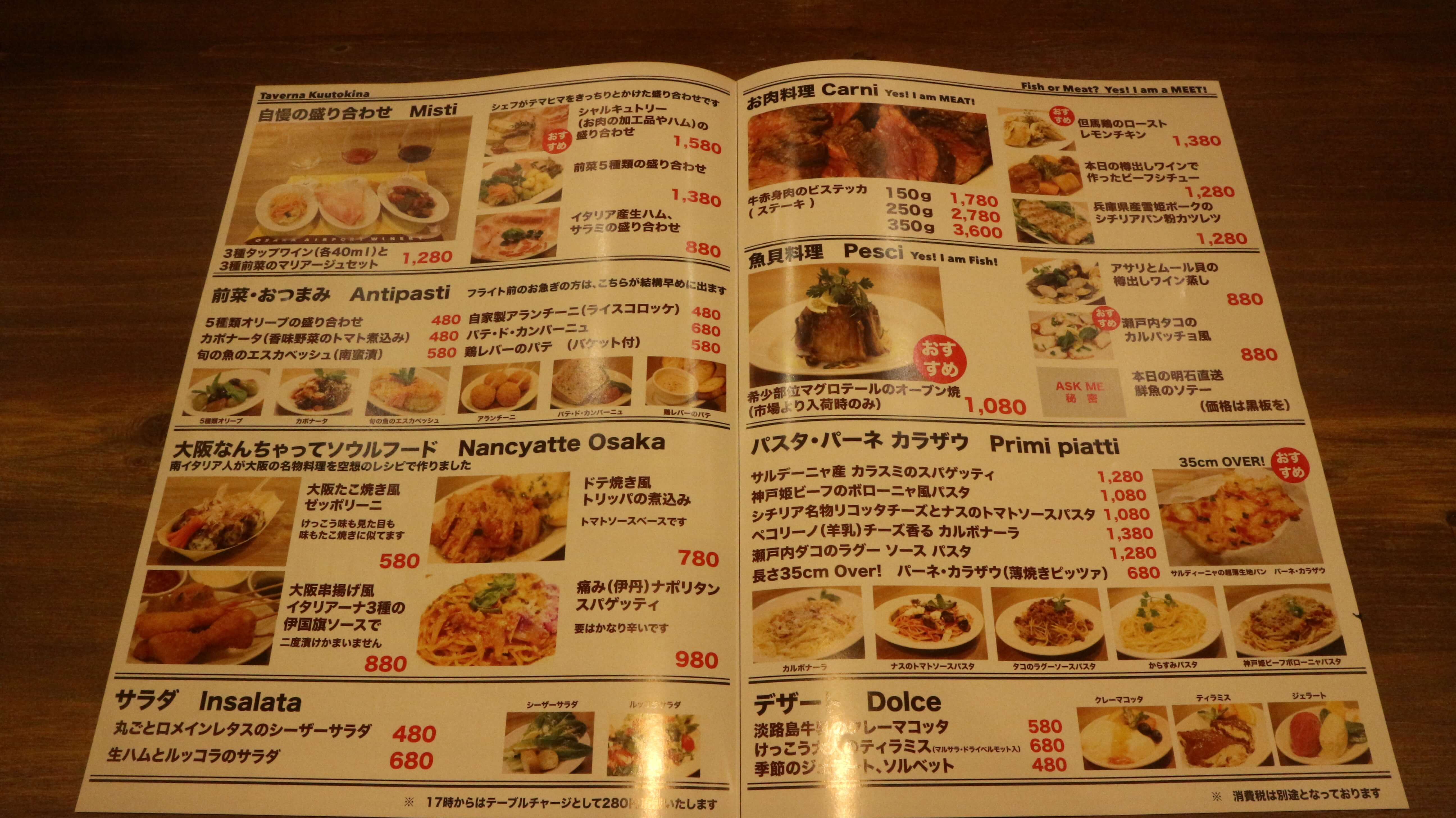 「大阪たこ焼き風ゼッポリーニ」「大阪串揚げ風イタリアーナ3種の伊国旗ソースで」「ドテ焼き風トリッパの煮込み」「痛み(伊丹)ナポリタンスパゲッティ」などなど…次回は是非試してみたいところです!