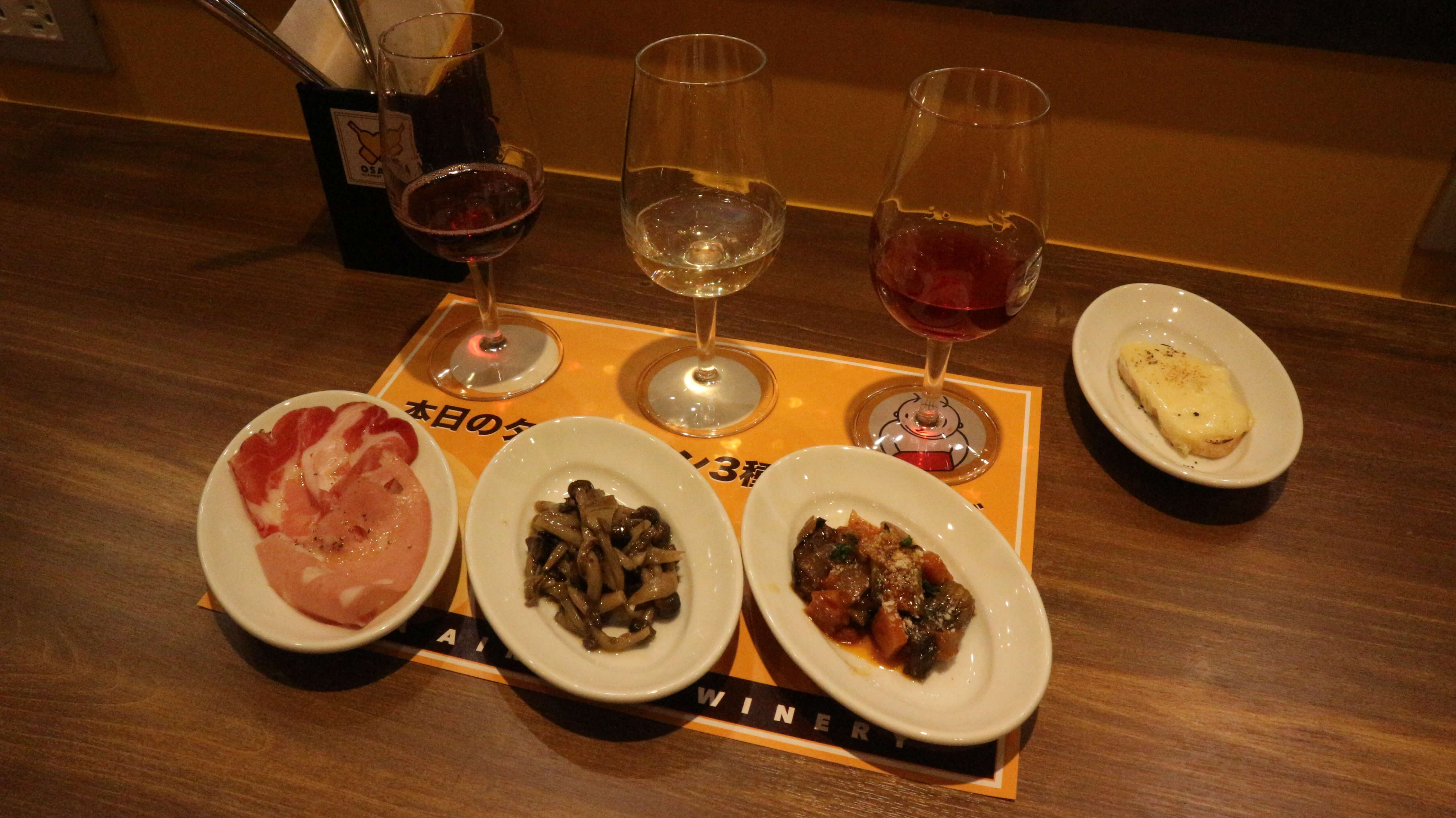という組み合わせでした。国産ワインなので軽くて飲みやすいです。ちょっとずついろいろなワインを楽しめてちょい飲みにはちょうどいいメニューでした!次回はがっつり食事もしてみたいと思います。
