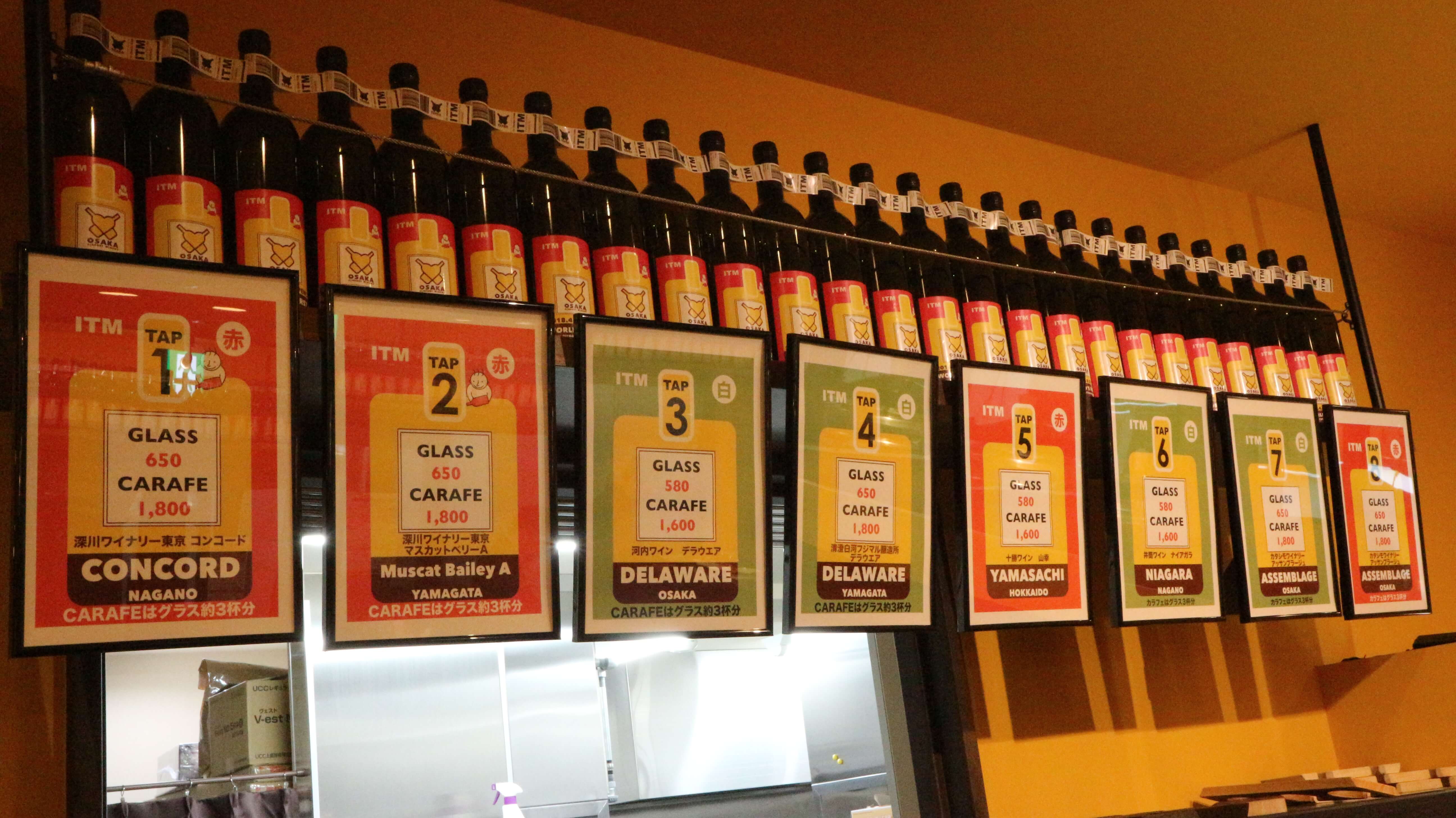 運営企業である深川ワイナリー東京のワインが2種類。大阪ワインとして有名なカタシモワイナリーのワイン2種類と河内ワイン1種類。都市型ワイナリーで名高いフジマル醸造所のワインが1種類。国内のワインコンクールで受賞歴が多い信州の井筒ワインが1種類。十勝ワインが1種類でした。