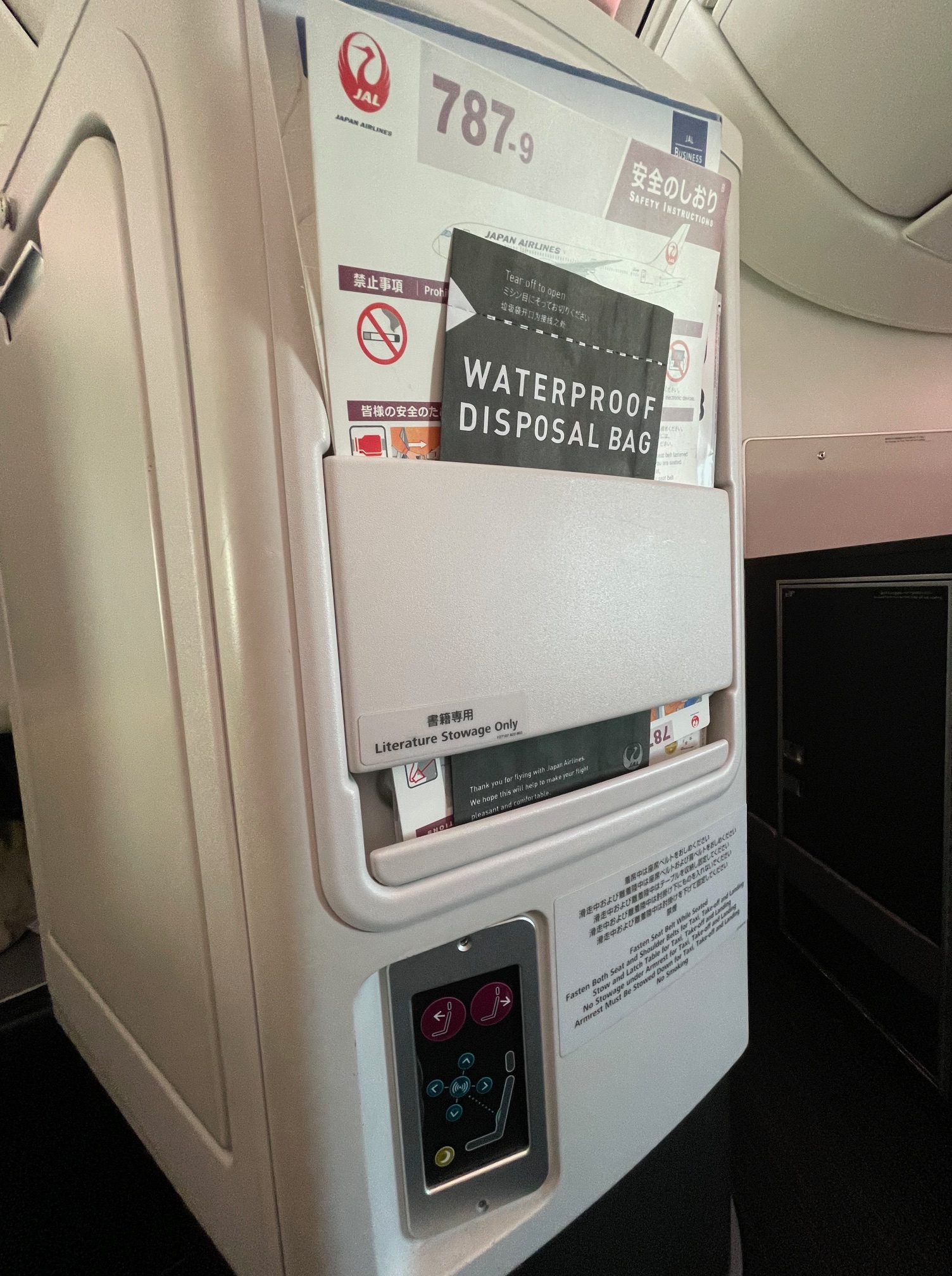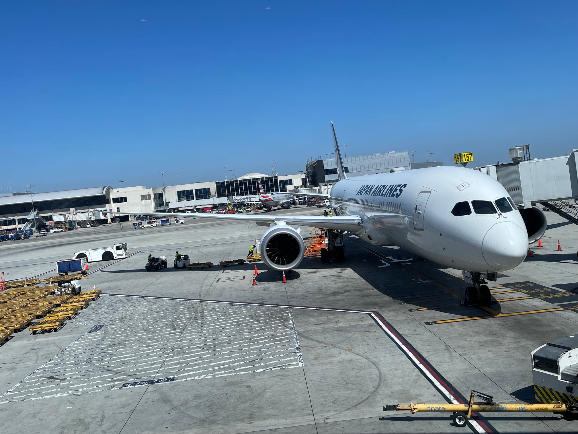 今回搭乗した機材はBoeing 787-9 Dreamlinerです。ロサンゼルス国際空港発関西国際空港行きのJAL69便(ロサンゼルス14:55発関空18:55着)でした。