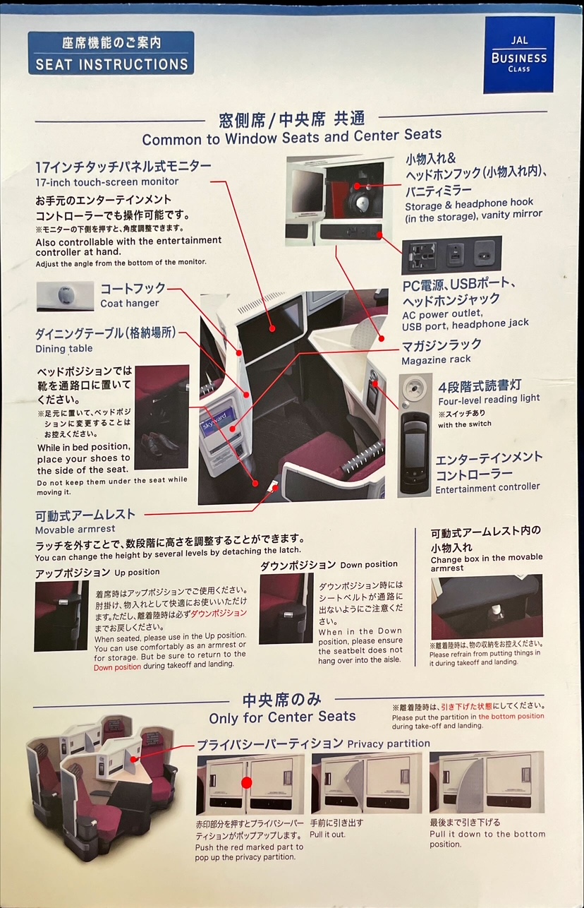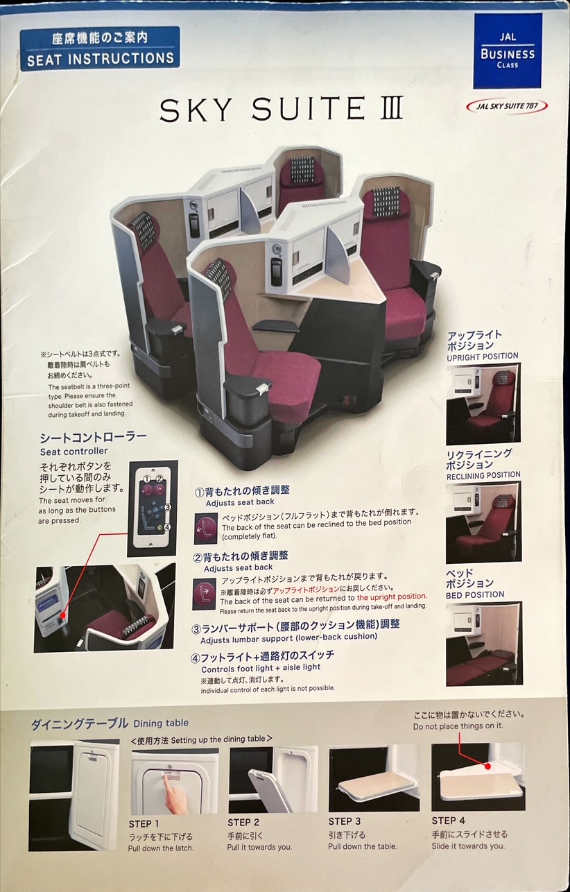 ビジネスクラスのシートは「JAL SKY SUITE Ⅲ」と呼ばれるものです。