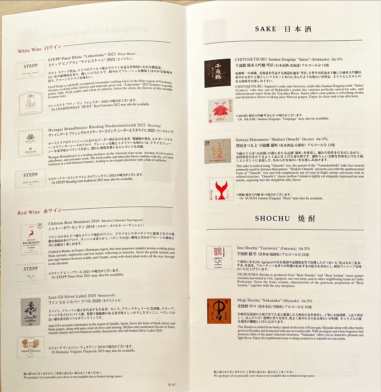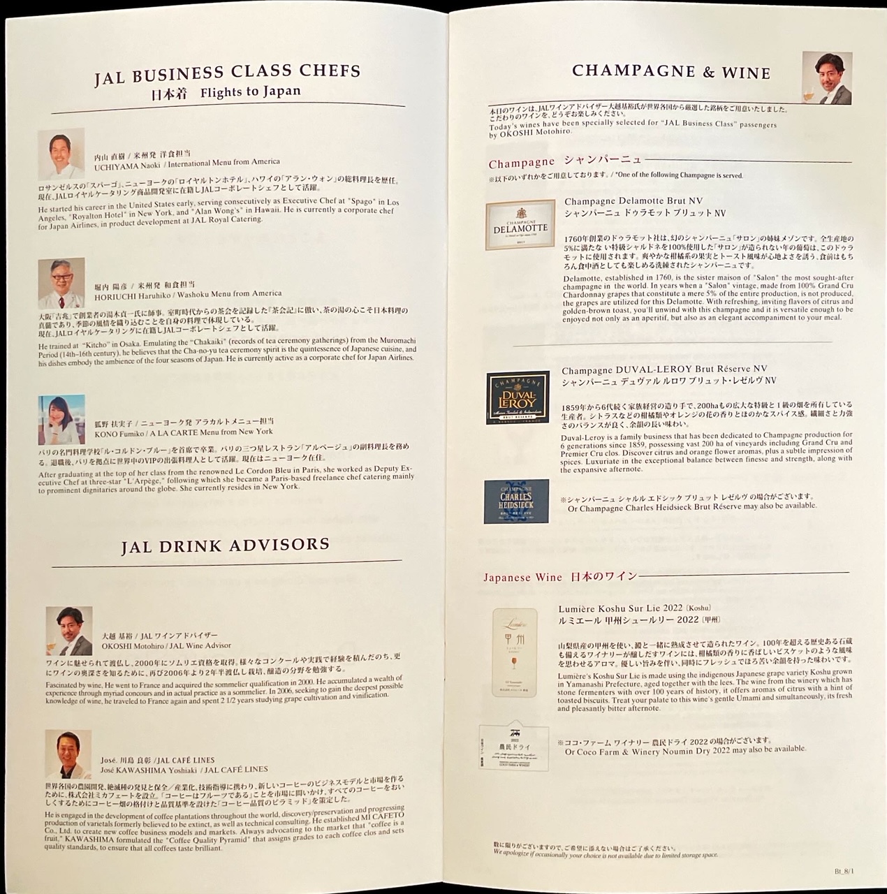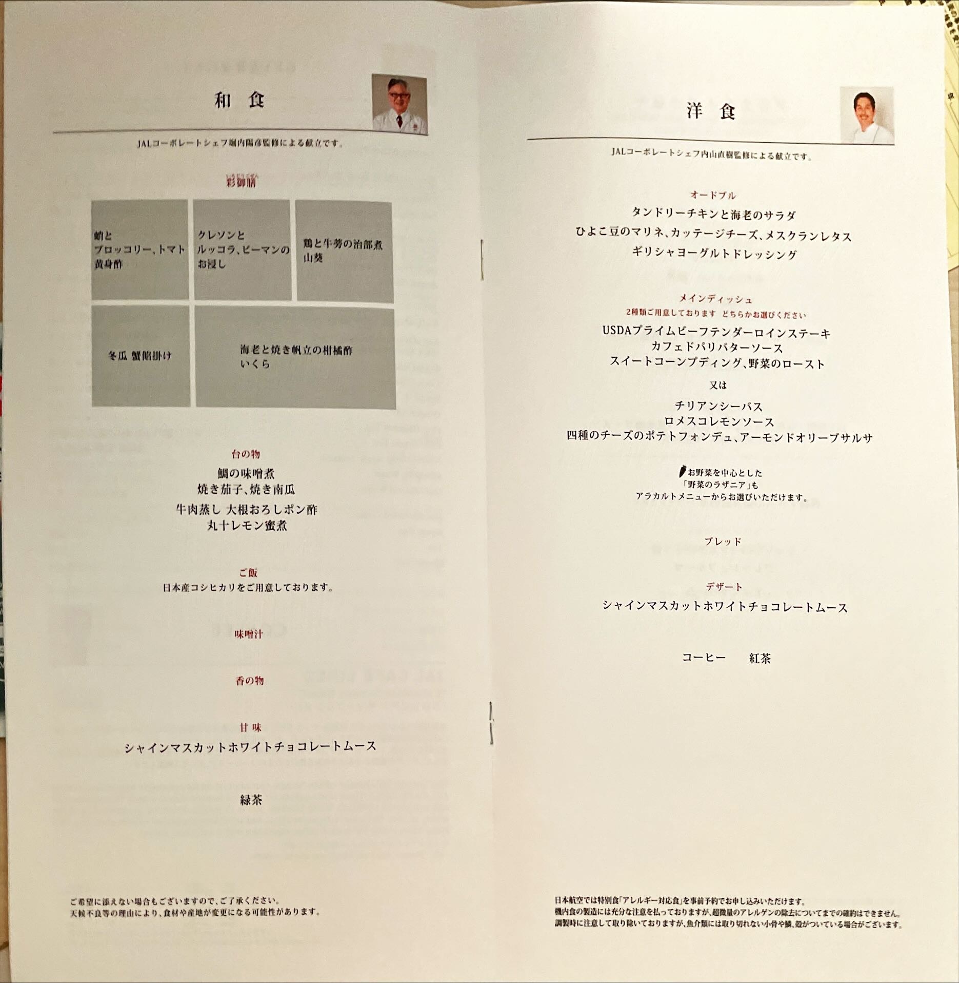 ビジネスクラス機内食の和食、洋食のメニューはこんな感じです