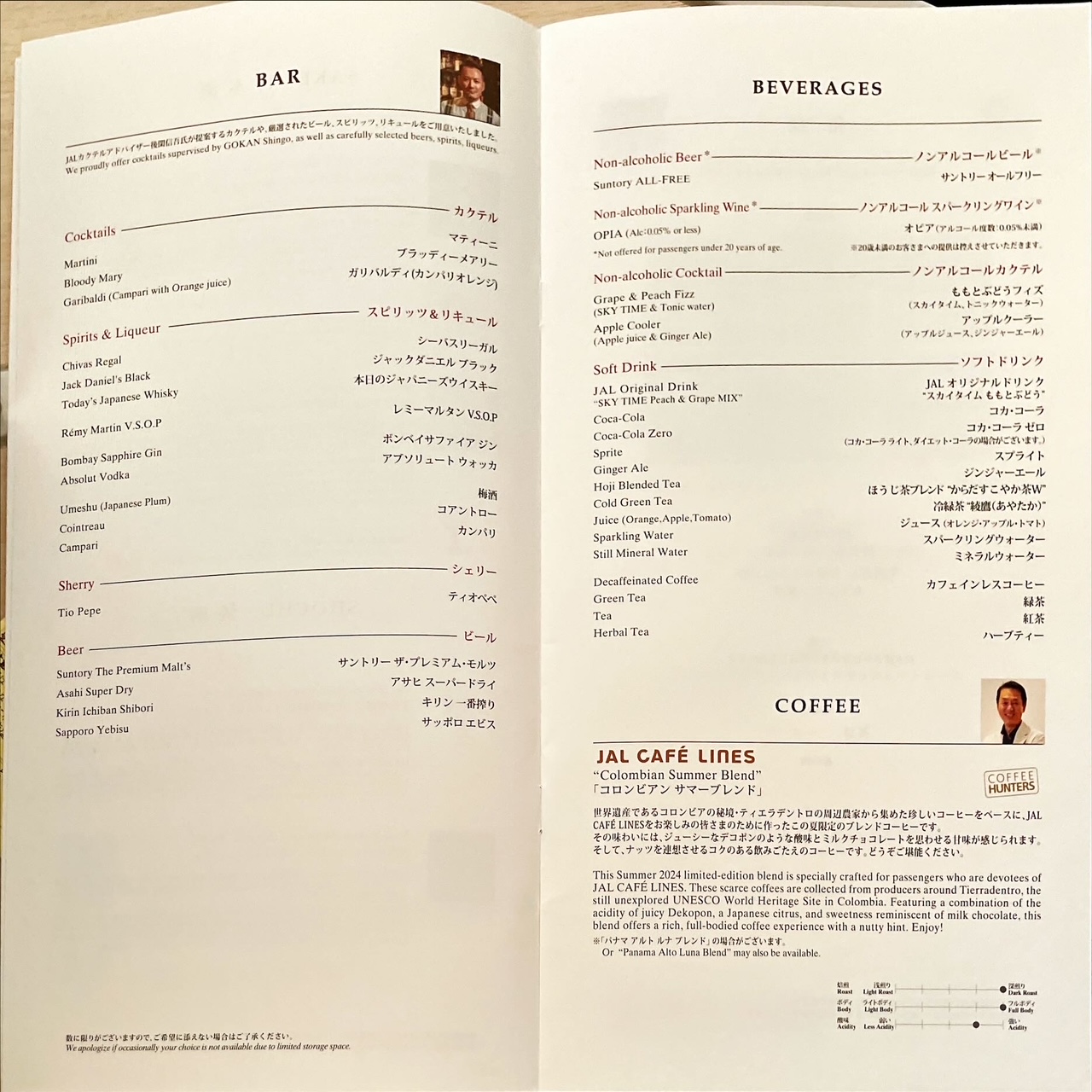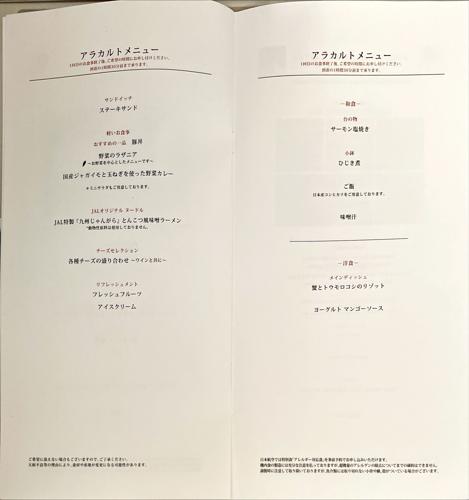その後は「アラカルトメニュー」といういつでも注文できるメニューの中から2回目の機内食を含め注文することになります