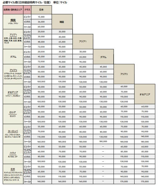 すなわち行き先が決まれば一目で必要マイルがわかります。