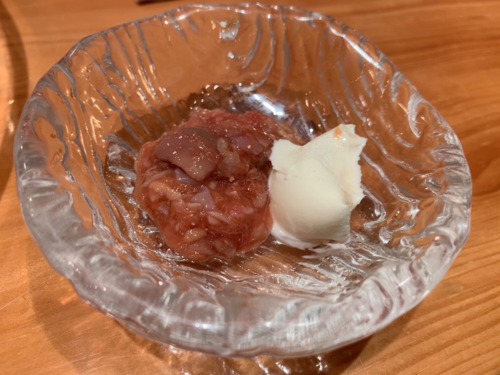 「お箸で混ぜて下さい」とのことでしたが、お箸で混ぜちゃうと次の料理にもチーズや酒盗の風味が残ってしまうので混ぜる用のスプーンなどを出してもらえるとありがたかったですかね