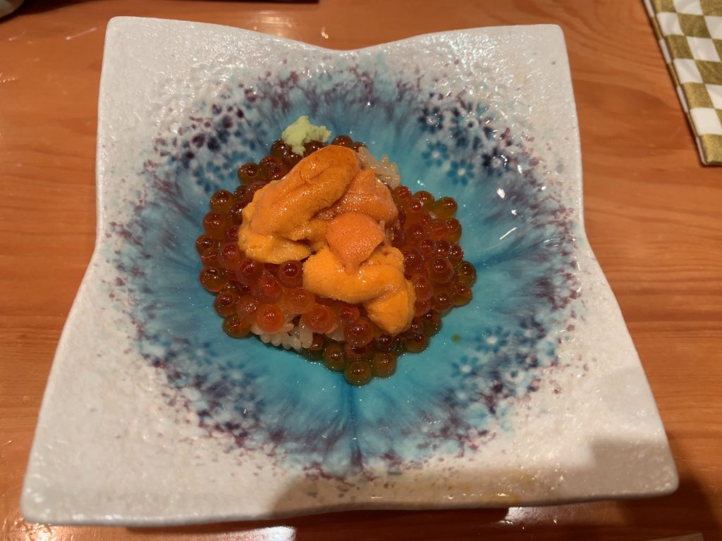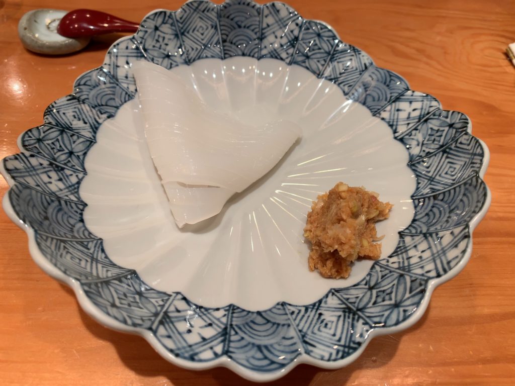 赤いかはもちもちしていて美味しいです。山わさびと食べるとつーんと山わさびが来た後にいかの甘味が感じられます。如何せん山わさびの量が多すぎて残しました。山わさびを全部食べるペースだといかの甘味がかき消されて山わさびの辛さだけが残ってしまう気がします…
