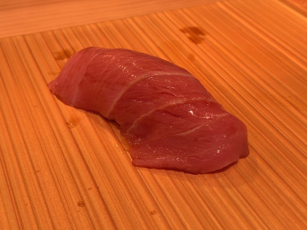 産地が違うマグロが出てきます。こちらは中トロでしょうか。口に入れるととろけます。こちらは旨みというより脂の甘味が主体でしょうか。