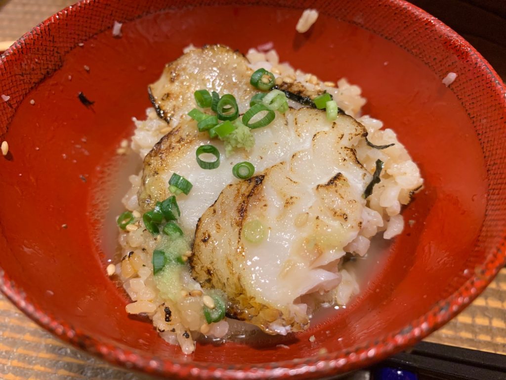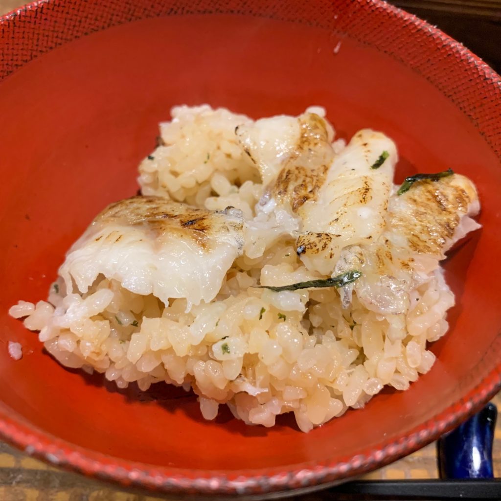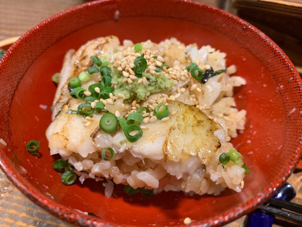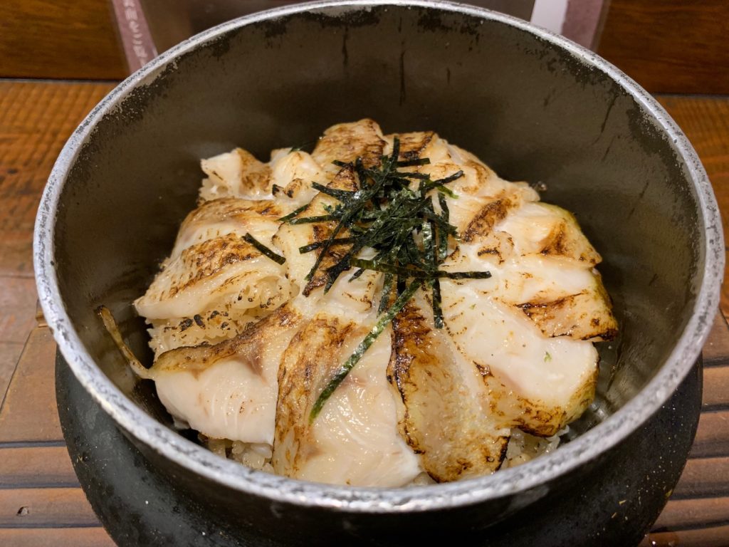 バーナーで炙られてちょっと焦げた香ばしい匂いが食欲をそそります。カウンター席は他の人が注文したのど黒めしを炙る匂いも楽しめるのでお得です(笑)