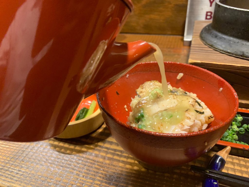 3膳目は特製「のど黒だし」を注ぎ入れて、お茶漬け風にしていただきます。