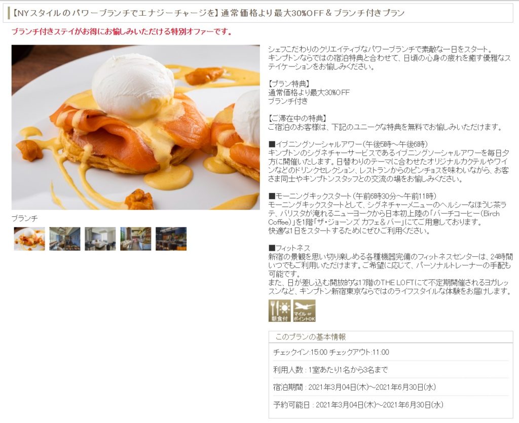 当初はポイントを利用した無料宿泊にしてブランチの追加を予定していたのですが、ブランチ付きプランの値段が直前に下がったので予約を取り直しました!