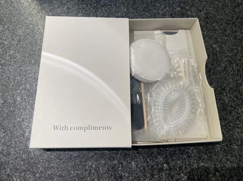 大きな箱の中身はコットンや綿棒、シャワーキャップなど