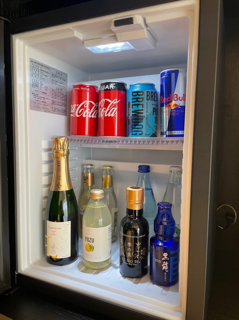 冷蔵庫内のミニバーの飲み物はなかなかいい感じです!